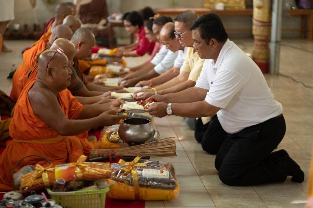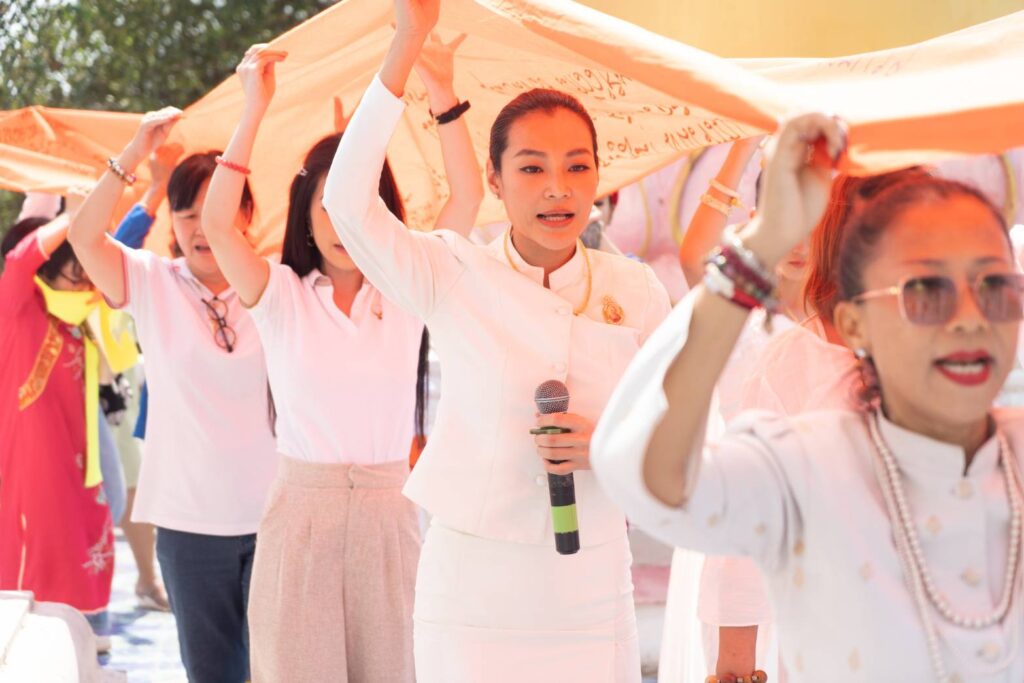 โดยได้รับความเมตตาจาก พระอธิการมานพอคฺคจิตฺโต เจ้าอาวาสวัดวังหงส์เหนือ จ.แพร่ เป็นประธานฝ่ายสงฆ์ ดร.นุ้ย เกศริน เอกธวัชกุล ทำหน้าที่พิธีกรและเริ่มพิธีสงฆ์ ด้วยการอารธนาศีล ๕ กล่าวคำถวายผ้าห่ม ผ้าไตร และชุดสังฆทาน พิธีกรนำผู้เข้าร่วมงานนั่งสมาธิ อธิษฐานจิต เพื่อถวายเป็นพุทธบูชาแด่ องค์สมเด็จสัมมาสัมพุทธเจ้า เนื่องในวันพระใหญ่ วันมาฆบูชา