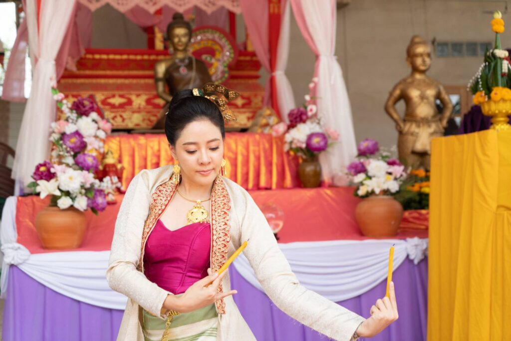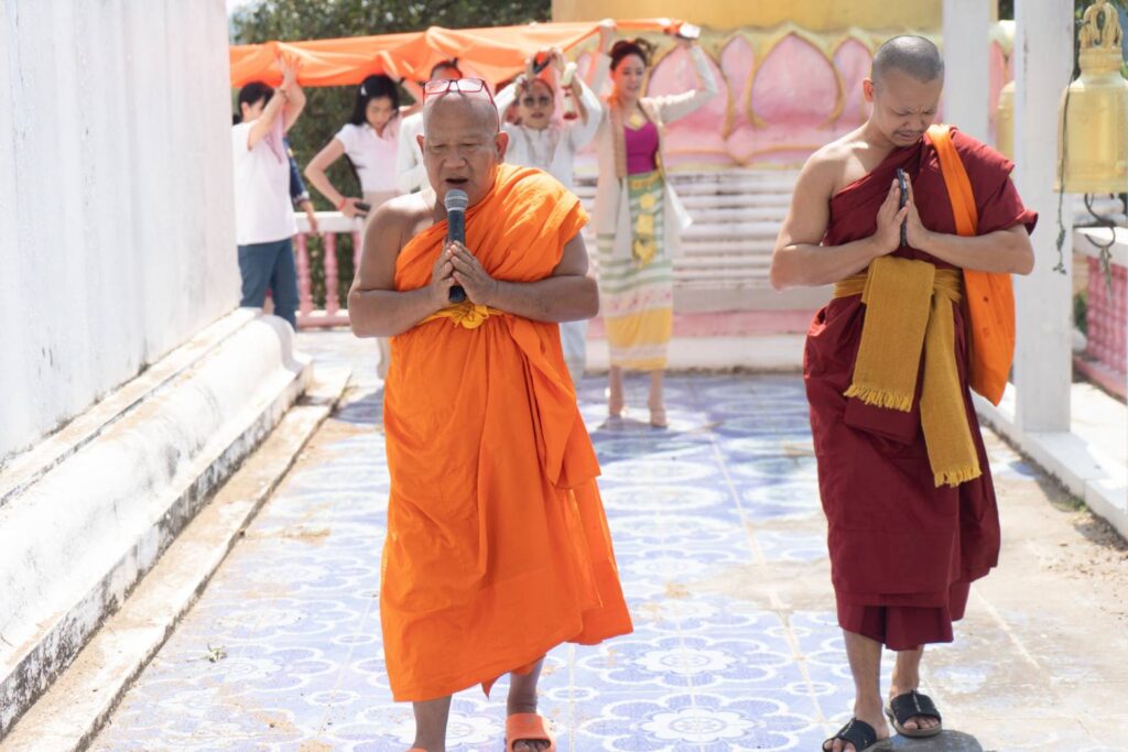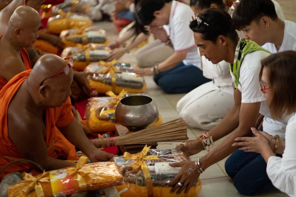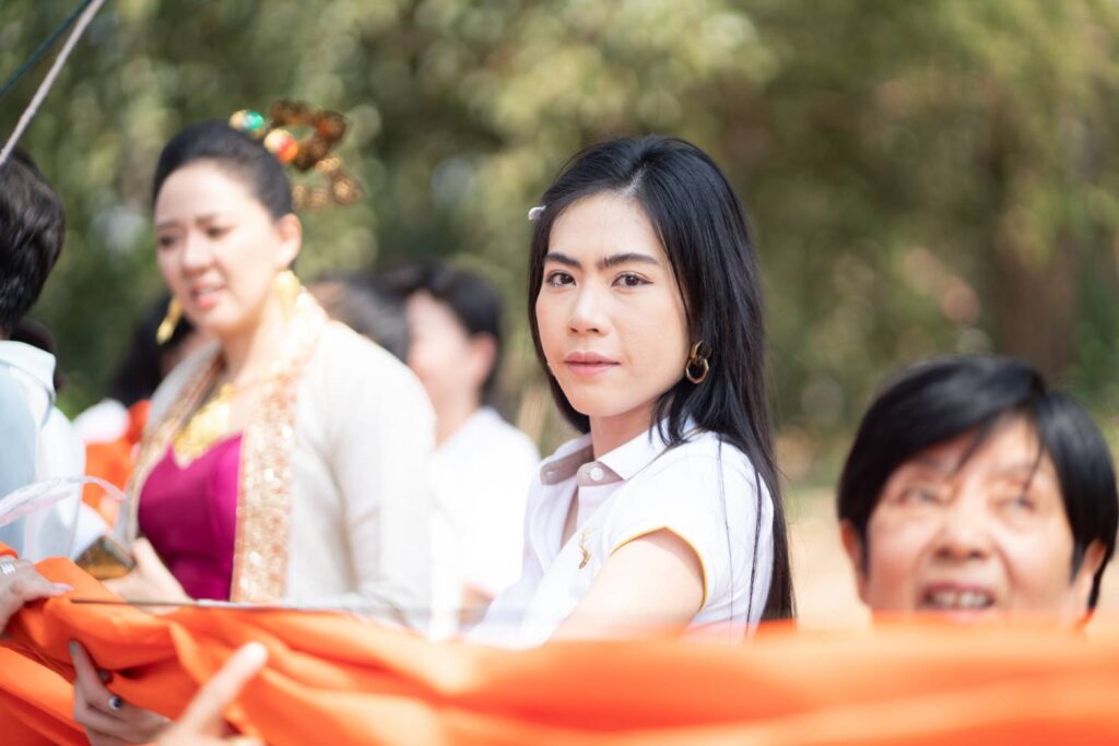 โดยมีเหล่าศิลปินดาราและคนบันเทิงให้เกียรติร่วมงานบุญใหญ่ ได้แก่ ชญาภา บีเวอร์ ผู้บริหารสถาบัน เอ็มบีเวอร์ กรุ๊ป, ครูเมย์-ภทดา สิงห์แก้ว ผู้บริหารสถาบันพัฒนาบุคลิกภาพ M Power Studio สืบสานอนุรักษ์วัฒนธรรมไทย จ.เชียงใหม่, เพ็ญจันทร์ วงศ์สมเพ็ชร ผู้ช่วยผู้กำกับละคร “สองทระนง” ช่อง 7HD, ณมน -พัชรวลัย พงษ์ภมร จากละครเรื่อง มรกตสีรุ้ง ช่อง 7HD, สิริภัสสร หมวดอ่อน (แม่แขก), ทอฝัน-ไอณัฐชา นภสวัสดิรังสี, จุรีรัตน์ ชัยพรหมประสิทธิ์ และน้องๆ จากสถาบันพัฒนาบุคลิกภาพ M Power studio จ.เชียงใหม่