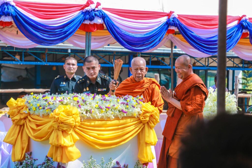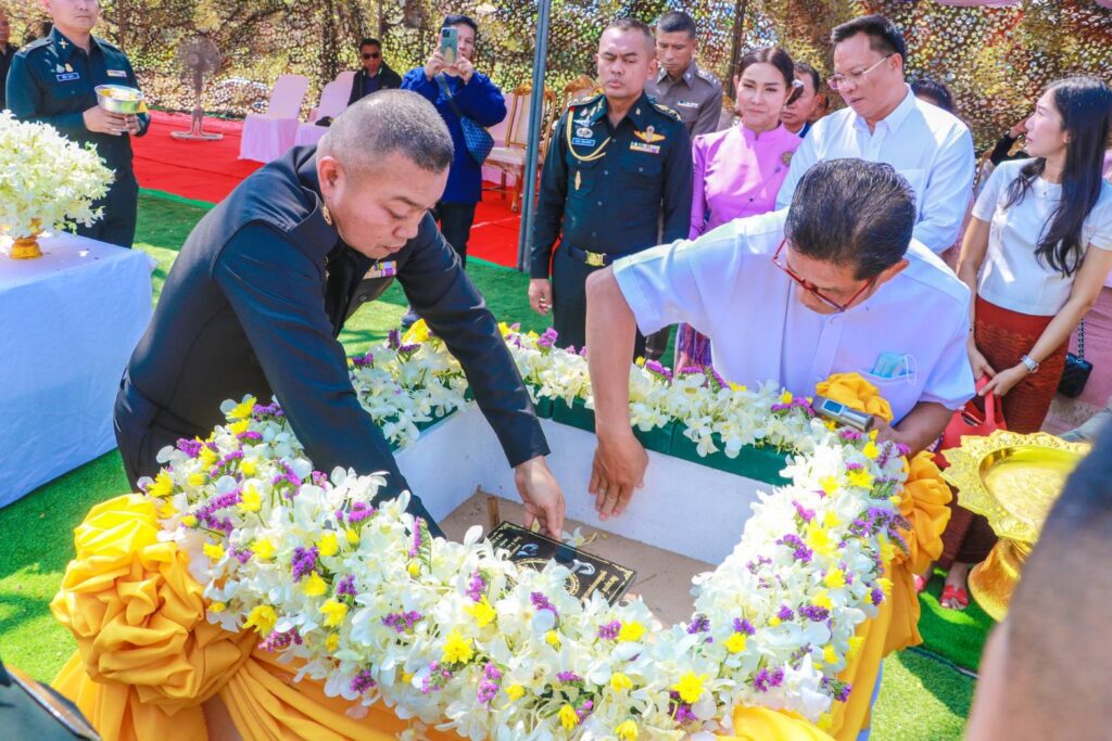วันที่ 28 กุมภาพันธ์ 2567 ที่มูลนิธิกองทุนการศึกษาผู้ด้อยโอกาส บ้านบึงเรือใหญ่ 85 หมู่ที่ 10 ตำบลโคกสี อำเภอเมือง จังหวัดขอนแก่น พลโท บุญสิน พาดกลาง แม่ทัพน้อยที่ 2 เป็นประธานพิธีวางศิลาฤกษ์อาคารอเนกประสงค์ มูลนิธิกองทุนการศึกษาผู้ด้อยโอกาส เพื่อไว้เป็นที่จัดพิธีไถ่ชีวิตโค-กระบือ มอบให้เกษตรกรผู้ยากไร้ ที่มีรายได้ต่ำกว่าเกณฑ์ ตามหลักเกณฑ์ ของโครงการธนาคารโค-กระบือ เพื่อเกษตรกรตามพระราชดำริในพื้นที่จังหวัดขอนแก่นและพื้นที่ใกล้เคียง รวมถึงการมอบทุนการศึกษาให้กับนักเรียนที่มีผลการเรียนดีครอบครัวมีรายได้น้อย โดยมี พันเอกอุเทน จีนทองหลาง เสนาธิการกรมทหารราบที่ 8 เป็นผู้แทนผู้บังคับการกรมทหารราบที่ 8, ผู้บังคับกองพันทหารราบที่ 3 กรมทหารราบที่ 8, ผู้บังคับศูนย์การฝึกนักศึกษาวิชาทหาร มณฑลทหารบกที่ 23 – ผู้ผ่านการอบรมหลักสูตรพัฒนาสัมพันธ์ระดับผู้บริหาร กองทัพภาคที่ 2,คุณนันฐิยา สิริกาญธนานันท์ ประธานมูลนิธิก่อการดีสร้างสังคมแบ่งปัน ,บริษัท เจมาร์ท ประกันภัย จำกัด (มหาชน) -และหัวหน้าส่วนราชการ ทหาร ตำรวจ และประชาชนในพื้นที่ให้การต้อนรับ ในโอกาสนี้แม่ทัพน้อยที่ 2 ประธานในพิธีได้จุดธูปเทียนบูชาพระรัตนตรัย พร้อมกล่าวคำบูชาพระรัตนตรัย,อาราธนาศีล หลังจากนั้นประธานสงฆ์ เจิมแผ่นศิลาฤกษ์ และเชิญแม่ทัพน้อยที่ 2 ประธานในพิธี ผู้บัญชาการกองพลทหารราบที่ 3 พร้อมคณะนายทหาร วางศิลาฤกษ์ และถวายผ้าป่าสามัคคี เพื่อสร้างอาคารอเนกประสงค์ โดยมีพระมหาวรวุฒิ ปญฺญาวุุฑฺโฒ (หลวงตาน้อย) ประธานมูลนิธิกองทุนการศึกษาผู้ด้อยโอกาส สำหรับการก่อสร้างอาคารอเนกประสงค์นี้ เพื่ออำนวยความสะดวกให้กับประชาชน และเกษตรกร ที่ร่วมพิธีไถ่ชีวิตโค – กระบือ ที่มอบให้กับเกษตรกรผู้ยากไร้ในพื้นที่ 20 จังหวัด ในภาคตะวันออกเฉียงเหนือ เพื่อนำไปเลี้ยงต่อซึ่งจะเป็นประโยชน์ สำหรับใช้ทำเกษตรกรรม และทำปศุสัตว์ ทำให้คุณภาพชีวิต ของเกษตรกรดีขึ้น ดำเนินตามหลักปรัชญาเศรษฐกิจพอเพียง พระบาทสมเด็จพระบรมชนกาธิเบศร มหาภูมิพลอดุลยเดชมหาราช บรมนาถบพิตร ตามพระราชดำริต่อไป