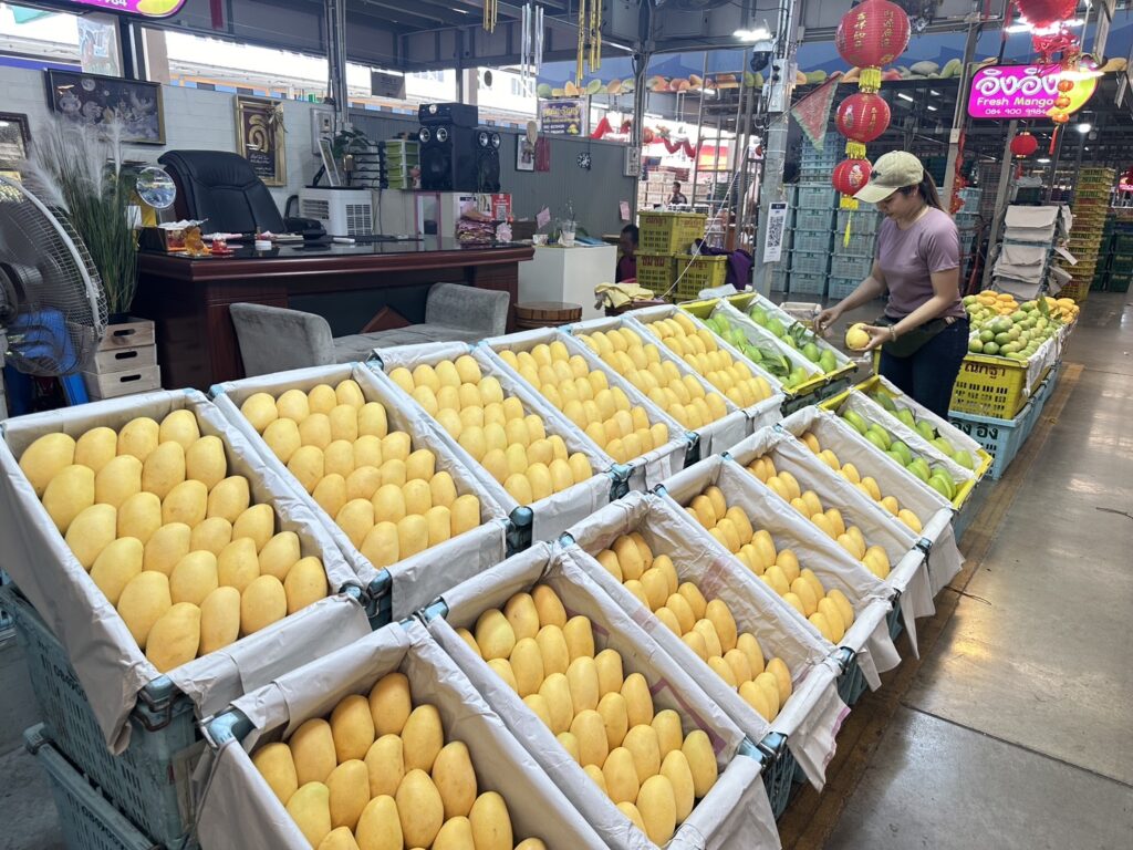 ในปีนี้ คาดว่าจะมีมะม่วงจากทั่วประเทศเข้ามาจำหน่ายมากถึงวันละ 240 ตัน หลากหลายสายพันธุ์ในราคาขายส่ง ทั้งสายพันธุ์โบราณ อาทิ แก้วลืมรัง หัวช้าง พราหมณ์ขายเมีย แขกขายตึก อกร่อง ปลาตะเพียน มันขุนศรี เริ่มต้นที่กิโลกรัมละ 4 บาท มะม่วงพรีเมี่ยมคุณภาพส่งออก อาทิ เขียวเสวย แรด น้ำดอกไม้ มหาชนก เริ่มต้นที่กิโลกรัมละ 25 บาท มะม่วงสายพันธุ์ที่สร้างกำไรดี อาทิ แก้วขมิ้น มันเดือนเก้า ฟ้าลั่น โชคอนันต์ เริ่มต้นที่กิโลกรัมละ 8 บาท