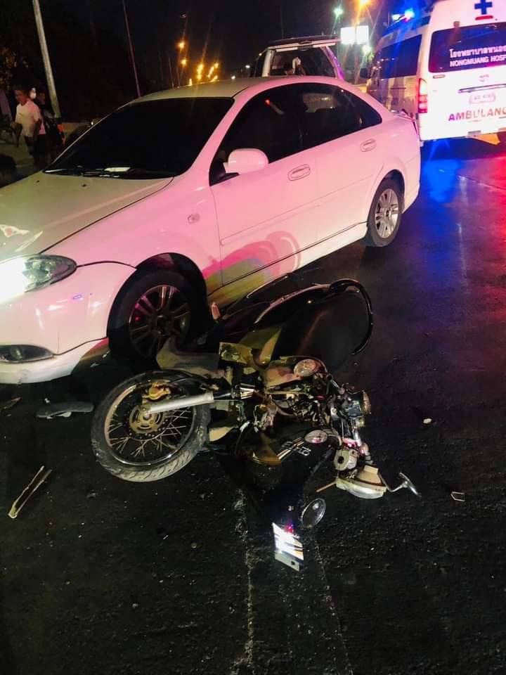 อุบัติเหตุรถยนต์เก๋งเฉี่ยวชนกับรถจักรยานยนต์ ที่อำเภอหนองม่วง จังหวัดลพบุรี