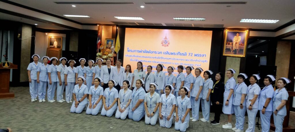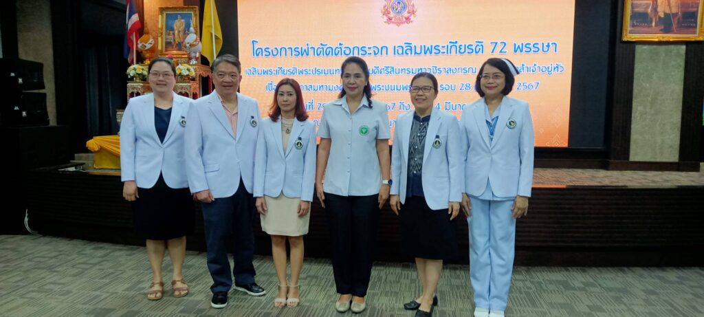 ซึ่งเป็นหน่วยงานของรัฐในสังกัดกระทรวงสาธารณสุข และเจ้าหน้าที่ ที่มีความรู้และสมรรถนะในการตรวจคัดกรอง และการผ่าตัด อันส่งผลให้ลดอัตรา การตาบอดจากโรคต้อกระจก เพื่อคุณภาพชีวิตและการมองเห็นที่ดี ซึ่งกิจกรรมการตรวจคัดกรอง โครงงานผ่าตัดท่อกระจกเฉลิมพระเกียรติ 72 พรรษา เนื่องในโอกาสสมมหามงคลเฉลิมพระชนม์พรรษาพระบาทสมเด็จพระเจ้าอยู่หัว พุทธศักราช 2567 ตัดเพื่อเป็นการช่วยเหลือผู้ป่วยที่มีที่ภาวะสายตาเลือกราง เสียงตาบอด นายเขตพื้นที่จังหวัดลพบุรีให้ได้รับการผ่าตัดต้อกระจกลดระยะเวลารอคอยป้องกันภาวะแทรกซ้อนจากโรคต้อกระจก เพิ่มคุณภาพการมองเห็นและคุณภาพชีวิตที่ดีของประชาชนชาวลพบุรี โรงพยาบาลพระนารายณ์มหาราชตำหนักถึงความสำคัญปัญหาดังกล่าวได้รับการสนับสนุนทีมจักษุประเภทโรงพยาบาลศิริราช นำโดย รองศาสตราจารย์นายแพทย์ นริศ กิจณรงค์ โดยมีกิจกรรมผ่าตัดต้อกระจกมีคนไข้เข้าร่วมจำนวน 272 ลายผ่าตัดต้อเนื้อจำนวน 16 ราย