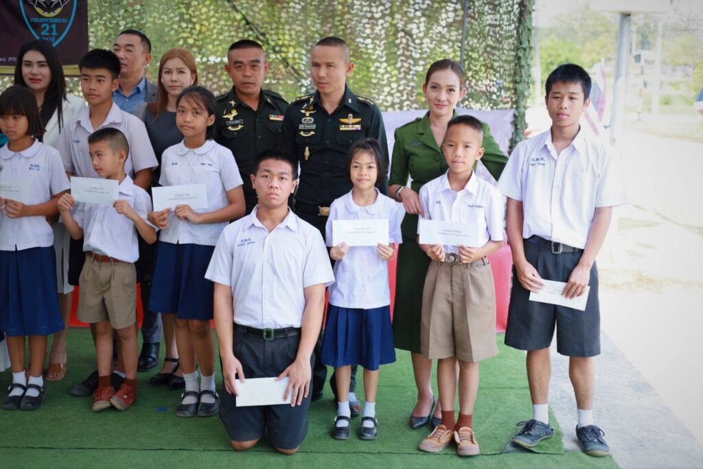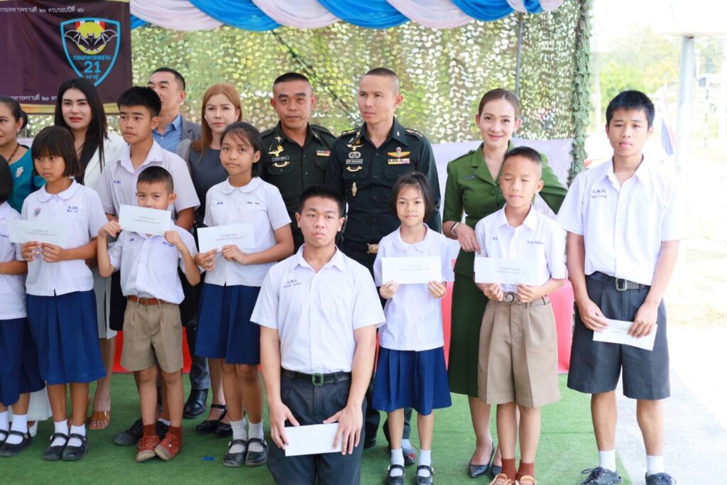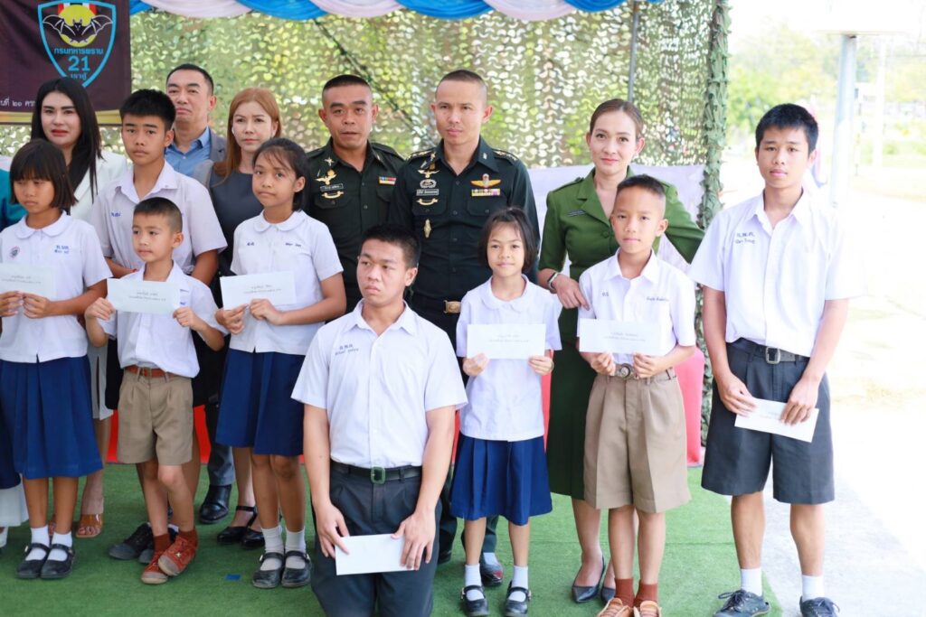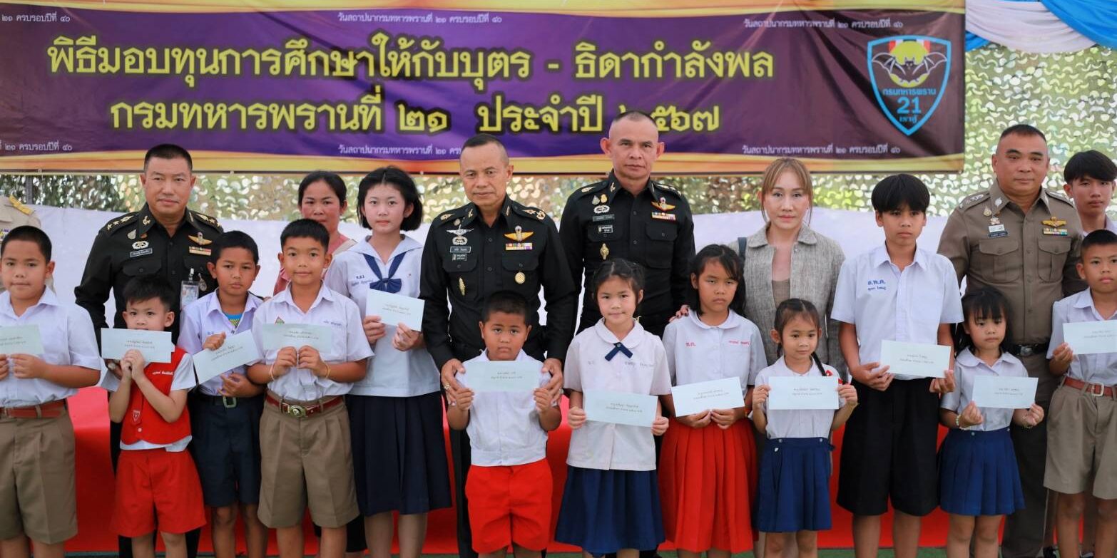 วันที่ 1 มีนาคม 2567 ที่ กรมทหารพรานที่ 21 ค่ายศรีสองรัก ตำบลศรีสองรัก อำเภอเมือง จังหวัดเลย พลตรี นรธิป โพยนอก ผู้บัญชาการกองกำลังสุรศักดิ์มนตรี/ผู้อำนวยการรักษาความมั่นคงภายในภาค 2 ส่วนแยก 1 ได้นำคณะนายทหาร นายสิบ อาสาสมัครทหารพราน และชมรมแม่บ้านทหารบก สาขา กรมทหารพรานที่ 21ส่งกำลังใจจากกองทัพบก จัดพิธีมอบทุนการศึกษาให้กับบุตรหลานของกำลังพลของหน่วย กรมทหารพรานที่ 21 ตามแนวนโยบายของกองทัพบก ที่มีวัตถุประสงค์เพื่อส่งเสริมการศึกษาของบุตรข้าราชการของหน่วย อันจะก่อให้เกิดผลดีในการพัฒนาประสิทธิภาพบุตรของกำลังพล ให้บุตรหลานกำลังพลของหน่วยมีความประพฤติดี อยู่ในระเบียบวินัยขยันหมั่นเพียรใฝ่เรียน ใฝ่ศึกษา และเป็นบุคลากรที่มีประสิทธิภาพของประเทศชาติ นอกจากนั้นยังเป็นการแบ่งเบาภาระค่าใช้จ่ายด้านการศึกษาของบุตร และเป็นขวัญกำลังใจแก่กำลังพลและครอบครัว โดยเล็งเห็นว่าการส่งเสริมการศึกษาของบุตรของหน่วย เป็นการพัฒนากองทัพบกอีกทางหนึ่ง และเป็นสิ่งที่จะต้องดำเนินการ เพราะถือว่าการศึกษาเป็นพื้นฐานของการพัฒนาทรัพยากรมนุษย์ โดยงบประมาณที่ใช้เป็นทุนการศึกษาในปีนี้ กำลังพลของหน่วยได้ร่วมแรงร่วมใจกันจัดกิจกรรม “กอล์ฟการกุศล” เพื่อหารายได้มาใช้เป็นทุนการศึกษา ให้กับบุตรของกำลังพล โดยได้รับการสนับสนุนงบประมาณจากผู้มีอุปการคุณที่ร่วมกิจกรรม ซึ่งพันเอก สุริวัชร์ อัครพรเดชาพงษ์ เป็นผู้บังคับการกรมทหารพรานที่ 21/ผู้บังคับหน่วยเฉพาะกิจกรมทหารพรานที่ 21 ได้นำรายได้ทั้งหมดมาจัดสรรเป็นทุนการศึกษาให้กับบุตรของกำลังพลทั้งหมดโดยหน่วยแบ่งมอบเป็นทุนระดับอนุบาล ระดับประถมศึกษา ระดับมัธยมศึกษา และทุนระดับอุดมศึกษา ถึง ระดับปริญญาตรี ด้วยเหตุผลดังกล่าว หน่วยจึงได้พิจารณาสนับสนุนส่งเสริมบุตรข้าราชการในทุกระดับชั้นยศ โดยเฉพาะข้าราชการชั้นผู้น้อยที่มีความประพฤติดี ขยันหมั่นเพียร ใฝ่เรียน ใฝ่ศึกษา ตามแนวนโยบายของกองทัพบก ด้วยรอยยิ้มที่อบอุ่น “เพราะเราคือ ครอบครัว พราน 21”