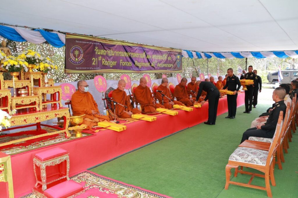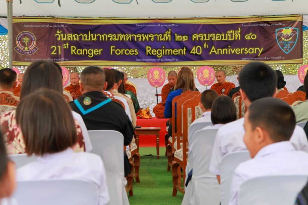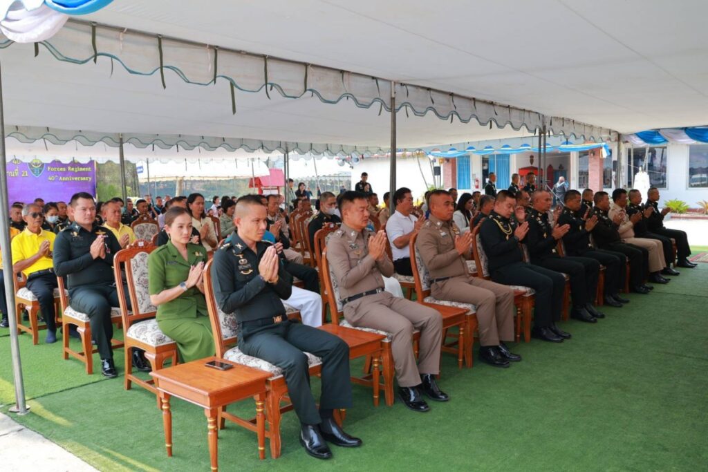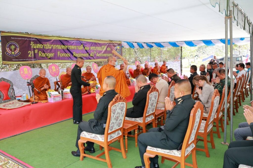 วันที่ 1 มีนาคม 2567 ที่ กรมทหารพรานที่ 21 ค่ายศรีสองรัก ตำบลศรีสองรัก อำเภอเมือง จังหวัดเลย พลตรี นรธิป โพยนอก ผู้บัญชาการกองกำลังสุรศักดิ์มนตรี/ผู้อำนวยการรักษาความมั่นคงภายในภาค 2 ส่วนแยก 1 ได้นำคณะนายทหาร นายสิบ อาสาสมัครทหารพราน และชมรมแม่บ้านทหารบก สาขา กรมทหารพรานที่ 21 ประกอบพิธีบำเพ็ญกุศล เพื่อเป็นสิริมงคลแก่หน่วยหน่วยกรมทหารพรานที่ 21 และอุทิศส่วนกุศลให้กับข้าราชทหารผู้เสียสละ และพลีชีพเพื่อชาติ เนื่องในวันคล้ายวันสถาปนาหน่วย ครบรอบปีที่ 39 ซึ่งกรมทหารพรานที่ 21 ก่อตั้งมาตั้งแต่ตามคำสั่ง ทบ.(เฉพาะ)ที่ 22/27 ลง 19 ม.ค.2527 แปรสภาพ กรมอาสาสมัครทหารพราน 2303 และ 2307 เป็นกรมทหารพรานที่ 21 ปีพุทธศักราช 2526 จนถึงปัจจุบัน ครบรอบปีที่ 40 ปี ซึ่งหน่วยได้ปฏิบัติงานมาอย่างเป็นรูปธรรมในการการปฏิบัติภารกิจป้องกันชายแดนสกัดกั้นการลักลอบนำสิ่งผิดกฎหมาย เข้ามาในประเทศจนได้รับความไว้วางใจจากกองทัพบก และได้รับรางวัลชมเชย การปฏิบัติงานจากผู้บัญชาการทหารบก จากผลปฏิบัติงานดังกล่าว เกิดจากความมุ่งมั่น ทุ่มเท เสียสละของกำลังพลกรมทหารพรานที่ 21 โดยมีหัวหน้าส่วนราชการ หน่วยงานภาครัฐ ภาคเอกชน ในพื้นที่จังหวัดเลย และผู้มีเกียรติร่วมพิธี โดย ผู้บัญชาการกองกำลังสุรศักดิ์มนตรี ได้กล่าวชมเชยกำลังพลทุกนายมีความมุ่งมั่น ทุ่มเท เสียสละ อุทิศตน เพื่อกองทัพบก และกองทัพภาคที่ 2กรมทหารพรานที่ 21 ได้รับการสถาปนาเมื่อวันที่ 1 มีนาคม พ.ศ. 2527 หน่วยกรมทหารพรานที่ 21 /หน่วยเฉพาะกิจกรมทหารพรานที่ 21 เป็นหน่วยขึ้นควบคุมทางยุทธการกับกองกำลังสุรศักดิ์มนตรี มีที่ตั้งปกติอยู่ที่ค่ายศรีสองรัก ปฏิบัติตามพันธะกิจ 3 ประการ คือ การเฝ้าตรวจและป้องกันชายแดน การจัดระเบียบพื้นที่ และแก้ไขปัญหาความมั่นคงในพื้นที่ชายแดน การประสานความร่วมมือกับประเทศเพื่อนบ้าน โดยมีการวางกำลังรับผิดชอบ 5 จังหวัดชายแดน เพื่อชดเชยช่องว่างของหน่วยป้องกันชายแดนในพื้นที่ โดยวางกำลังในพื้นที่ จังหวัดเลย หนองคาย บึงกาฬ นครพนม และจังหวัดมุกดาหาร มีระยะทางตลอดจนลำน้ำโขงเส้นแบ่งเขตแดนไทยลาว ที่ระยะความยาว 804 กิโลเมตร ซึ่งหน่วยยังคงป้องกันแนวชายแดน ตลอด 24 ชั่วโมง เพื่อสร้างความเชื่อมั่นให้กับผู้บังคับบัญชา รวมถึงสร้างศรัทธาให้กับพี่น้องประชาชนได้อุ่นใจปลอดภัยในชีวิตและทรัพย์สิน ปัจจุบันมี พันเอก สุริวัชร์ อัครพรเดชาพงษ์ เป็นผู้บังคับการกรมทหารพรานที่ 21/ผู้บังคับหน่วยเฉพาะกิจกรมทหารพรานที่ 21