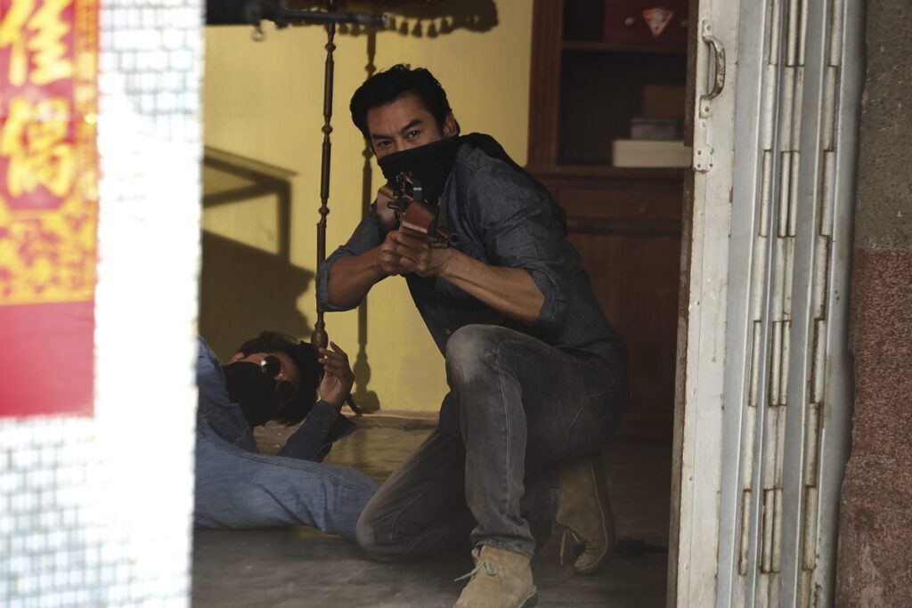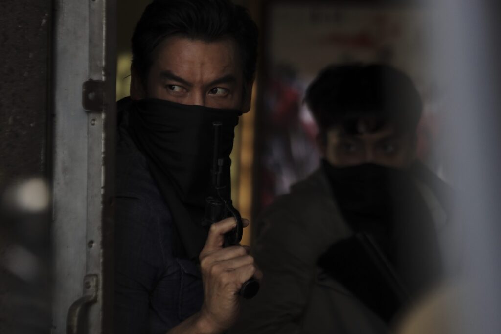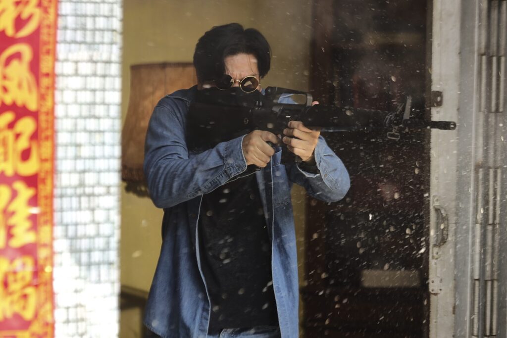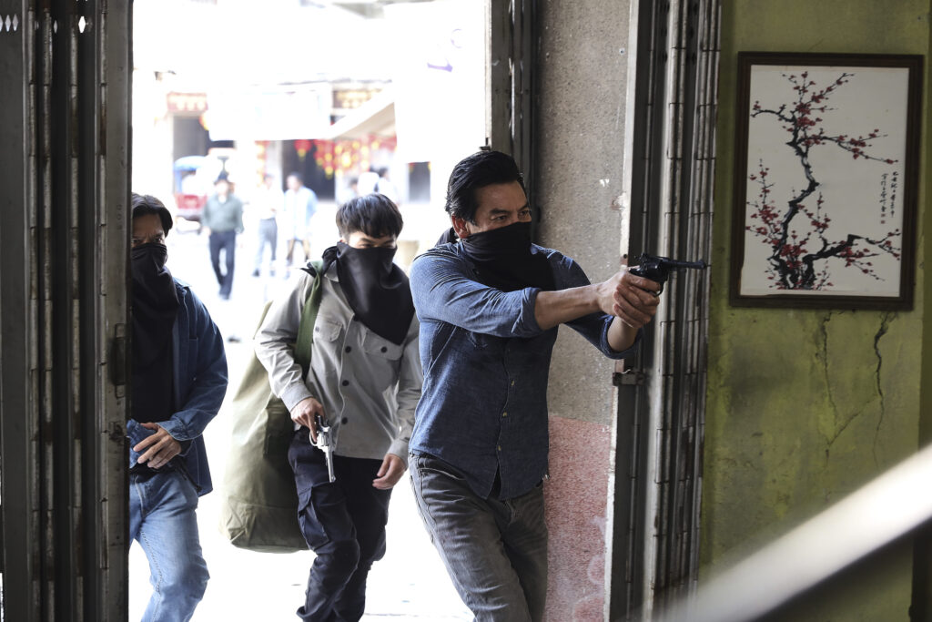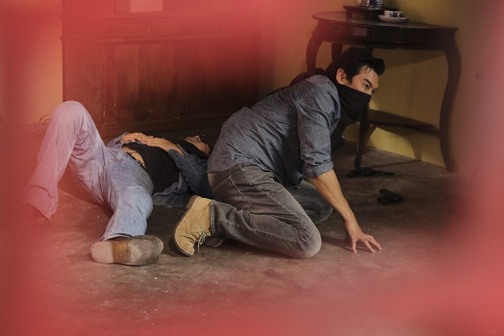 โดยเบื้องหลังมีการ จัดเซ็ตให้ย่านเวิ้งนาครเขษมมีชีวิตชีวาขึ้นอีกครั้ง ด้วยโปรดักชั่นจัดร้านค้าต่าง ๆ เสมือนจริง ผู้กำกับ อู๋และทีมงานทำการบ้านมาอย่างดี ทำให้ได้กลิ่นอายย่านการค้าในอดีตกลับมา ซึ่งยอมทุ่มงบประมาณเพื่อโลเคชั่นนี้แบบไม่อั้นด้วย โดยเป็นฉากที่ หนึ่ง (ขุนเผด็จ) นิมิตเห็นเหตุการณ์ล่วงหน้า ว่าจะมีการปล้นร้านทองเกิดขึ้น จึงรายงาน แฟรงค์ (ผู้กอง วิมล) พร้อมขอกำลังพลรวบรวมนายตำรวจมือดีในพื้นที่ต่าง ๆ มาซ้อนแผนปลอมตัวเป็นชาวบ้านเพื่อรับมือแก๊งเขี้ยวพยัคฆ์ งาน นี้ผู้กำกับและทีมงาน นอกจากจะเนรมิตให้เวิ้งนาครเขษมเป็นย่านการค้าที่รุ่งเรือง ซึ่งเป็นหัวใจหลักในการถ่ายทำของซีนนี้ ก่อน ซักซ้อมคิวกับแก๊งเขี้ยวพยัคฆ์ ชาคริต (อำไพ), เต๋า (หม่อม) และ ภีม (ห้าว) ที่ปิดบังใบหน้า พร้อมอาวุธ เดินอุกอาจเข้าไปยัง ร้านทอง และรู้ในเวลาต่อมาว่าตัวเองโดนซ้อนแผน หนึ่ง (ขุนเผด็จ) นำทีมตำรวจพร้อมจับกุม ก่อนจะยิงปืนขู่ และเกิดการยิงสวนกันไปมา ในทันทีจนเกิดการระดมยิงต่อสู้แบบเอาเป็นเอาตาย เอฟเฟคกระสุนปืน, ปืนกล, ระเบิดดังปัง ๆ สนั่นอย่างสะใจ เรียกบรรดาไทยมุงแถบนั้นมาร่วมดูว่าเกิดอะไรขึ้น ซึ่ง ชาคริต, เต๋าและ ภีม ต่างทุ่มเทกับซีนนี้อย่างมาก ซึ่ง อู๋ใจเย็นและใส่ใจในเนื้องาน มากเป็นพิเศษ เพื่อเก็บรายละเอียดให้สมบูรณ์ที่สุด ณ เวิ้งนาครเขษมถึง 3 วัน นับถือพลังของนักแสดงและทีมงานอย่างมาก
