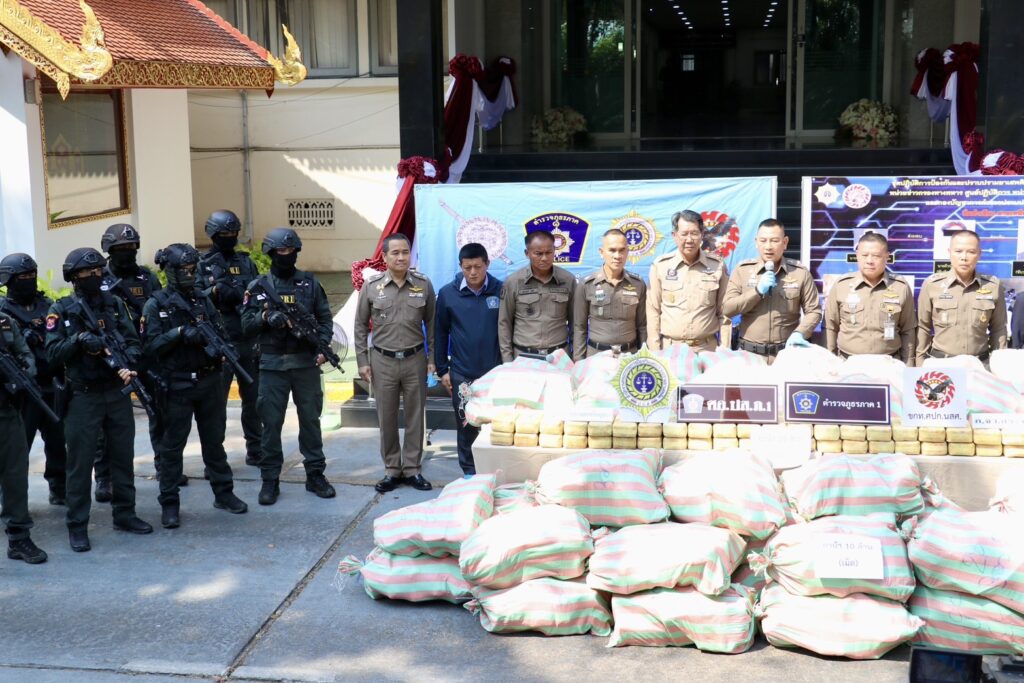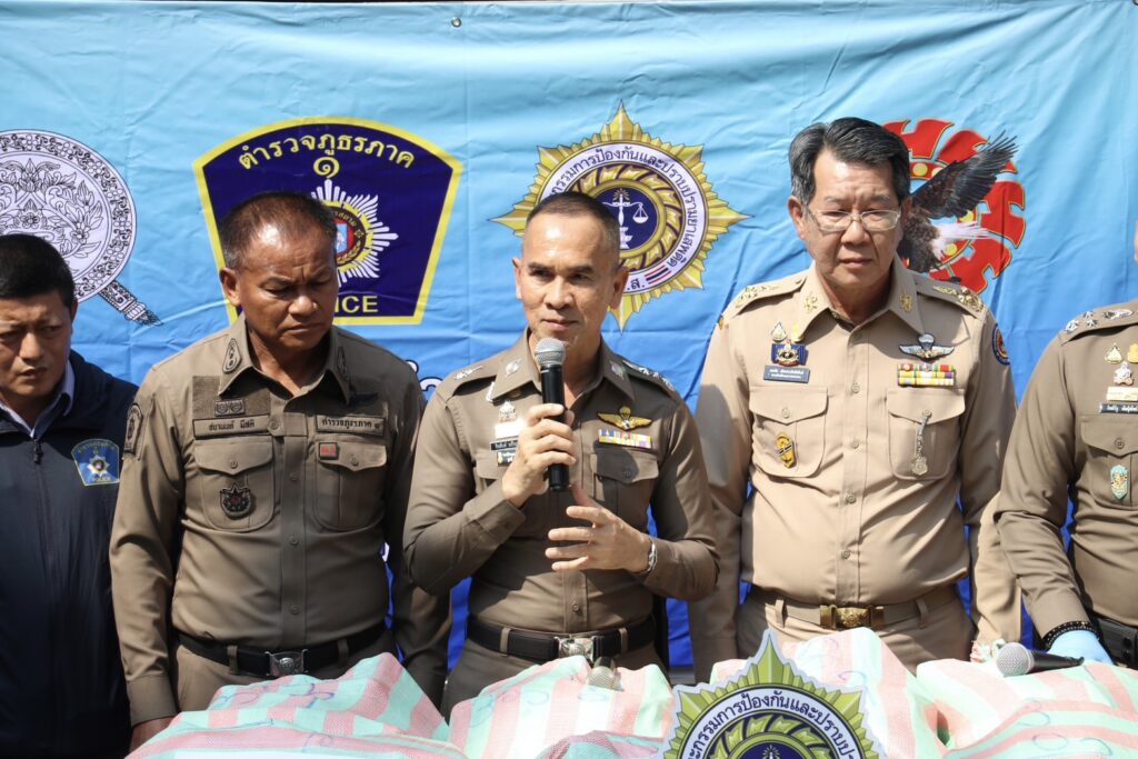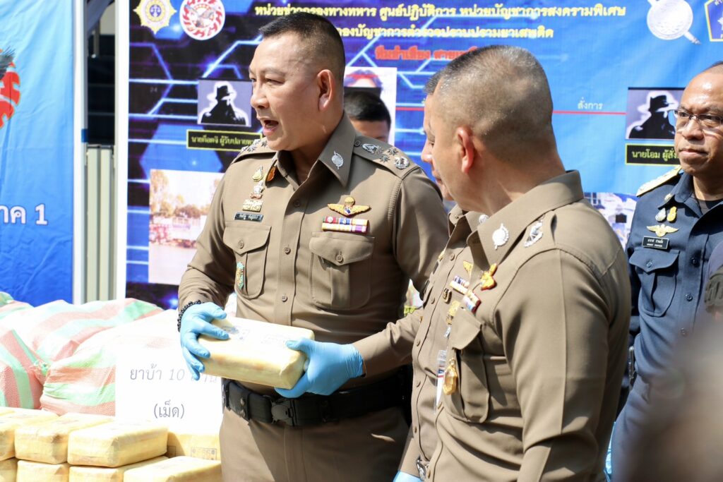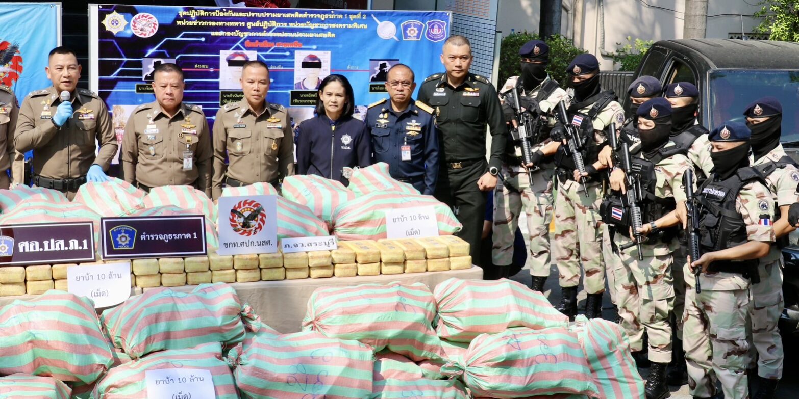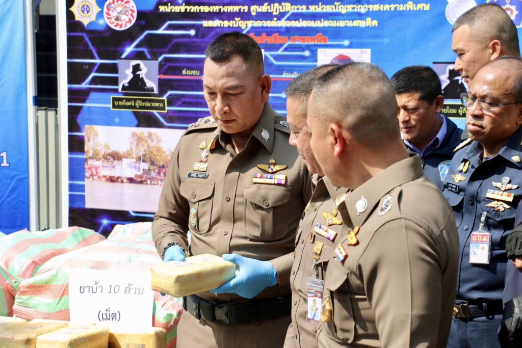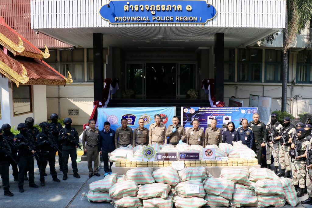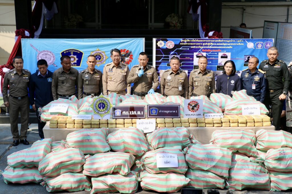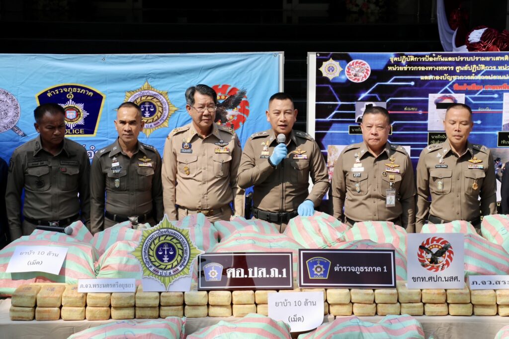 วันจันทร์ที่ 4 มี.ค.2567 เวลา 10.00 น. ณ ตำรวจภูธรภาค 1 : พล.ต.อ.กิตติ์รัฐ พันธุ์เพ็ชร์ รอง ผบ.ตร.,พล.ต.ท.อัคราเดช พิมลศรี ผู้ช่วย ผบ.ตร.,พล.ต.ท.จิรสันต์ แก้วแสงเอก ผบช.ภ.1 พร้อมคณะฯ ร่วมแถลงข่าวผลการจับกุมยาเสพติด พร้อมของกลาง ยาบ้า จำนวนประมาณ 10,000,000 เม็ด