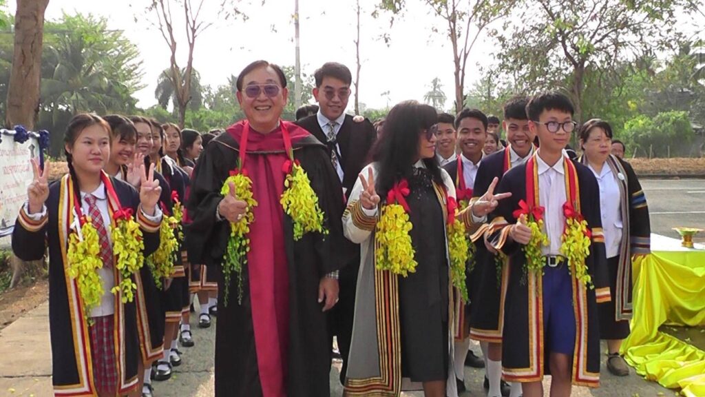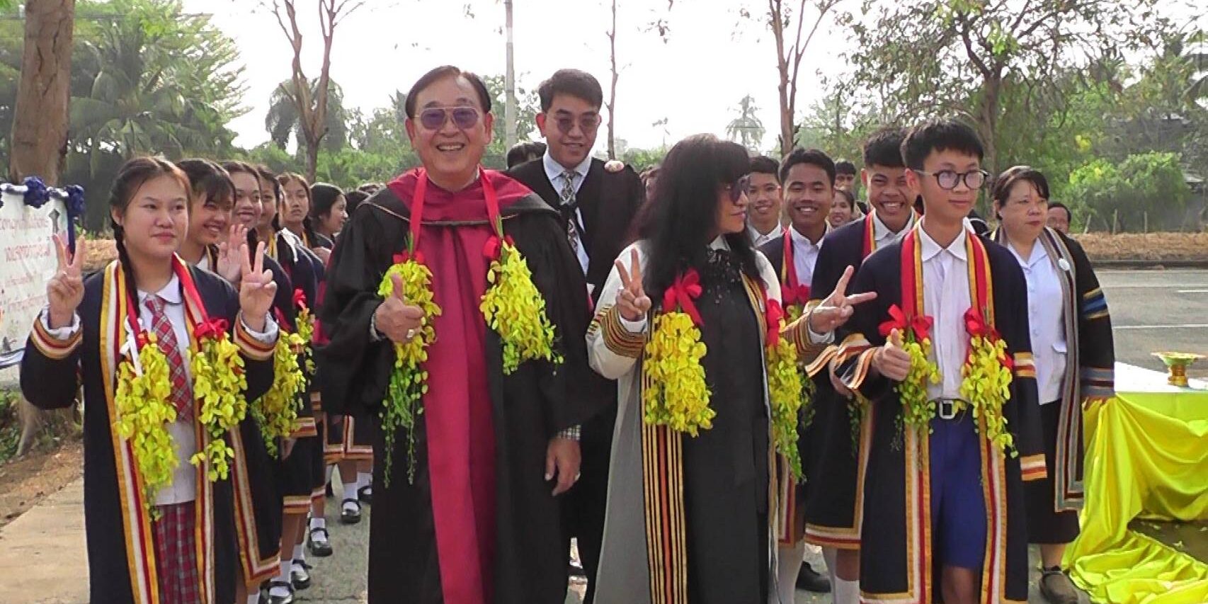 เมื่อเวลา 08.30 น. ผู้สื่อข่าวรายงานว่า เรื่องราวดีๆ ในพิธีมอบประกาศนียบัตรนักเรียน ชั้นมัธยมศึกษาปีที่ 3 ประจำปีการศึกษา 2567 ของโรงเรียนกุลดิศวิทยานุสรณ์ อำเภอหนองไผ่ จังหวัดเพชรบูรณ์ เมื่อทางโรงเรียนและคณะครู ได้เกิดไอเดียเก๋ นำดอกคูณริมรั้ว ที่กำลังออกดอกเหลืองอร่าม บานสะพรั่งเต็มต้น มาช่วยกันถักร้อยเป็นพวงมาลัยดอกคูณ สีสัน สวยสดงดงาม