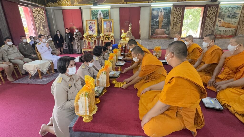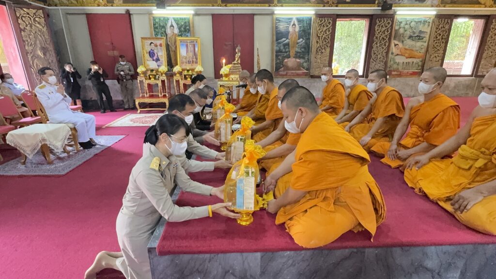 ผู้ว่าราชการจังหวัดลพบุรี ประธานในพิธีจุดธูปเทียนบูชาพระรัตนตรัย เปิดกรวยกระทงดอกไม้ธูปเทียนแพ เบื้องหน้าพระบรมฉายาลักษณ์พระบาทสมเด็จพระเจ้าอยู่หัว และ สมเด็จพระเจ้าลูกเธอ เจ้าฟ้าพัชรกิติยาภา นเรนทิราเทพยวดี กรมหลวงราชสาริณีสิริพัชร มหาวัชรราชธิดาแล้วถวายภัตตาหารเพลพระราชทานแด่ พระเทพเสนาบดี เจ้าคณะจังหวัดลพบุรี ประธานฝ่ายสงฆ์ และพระภิกษุ สามเณร ประธานฝ่ายสงฆ์ถวายอดิเรก ประธานในพิธีกรวดน้ำ กราบนมัสการพระรัตนตรัย ถวายความเคารพเบื้องหน้าพระบรมฉายาลักษณ์ และกราบลาประธานสงฆ์ จากนั้นประธานในพิธีถวายภัตตาหารเพลพระราชทานแด่พระภิกษุ สามเณรผู้เข้าสอบ พร้อมด้วยข้าราชการและประชาชน ร่วมถวายภัตตาหารพระราชทานแด่พระภิกษุและสามเณร ที่เหลือจนครบ เป็นเสร็จพิธี