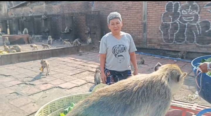 ขอบคุณน้ำใจสาวใหญ่ใจบุญ เหมาผักในตลาดมาเลี้ยงลิงที่หิวโหยอดอยาก มาเลี้ยงทุกวัน