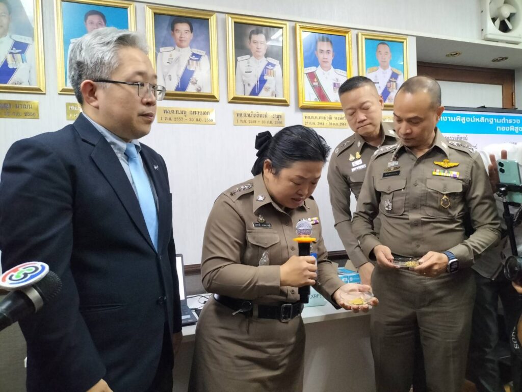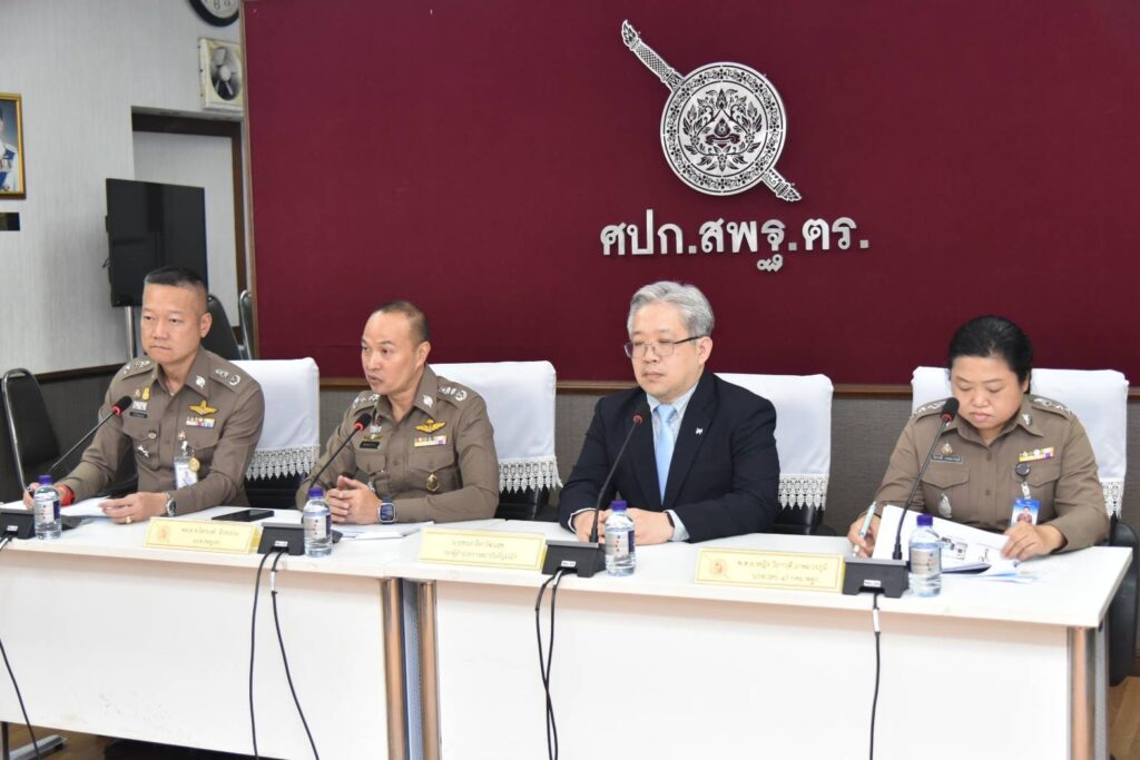 : พล.ต.ท.ไตรรงค์ ผิวพรรณ ผบช.สพฐ.ตร. พร้อมด้วย พล.ต.ต.วาที อัศวุตมางกุร ผบก.พฐก.,พ.ต.อ.หญิง วิภาวดี เกษมวรภูมิ นวท. (สบ 4) กคม.พฐก. ได้แถลงข่าวร่วมกับ นายทนง ลีลาวัฒนสุข