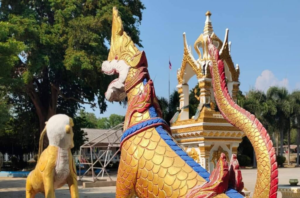 และวิหารแบบเก๋งจีนที่เป็นสถาปัตยกรรมเก่าของจีน ลักษณะคล้ายกับศาลาประดับตกแต่งด้วยลวดลายมังกรและนกยูง