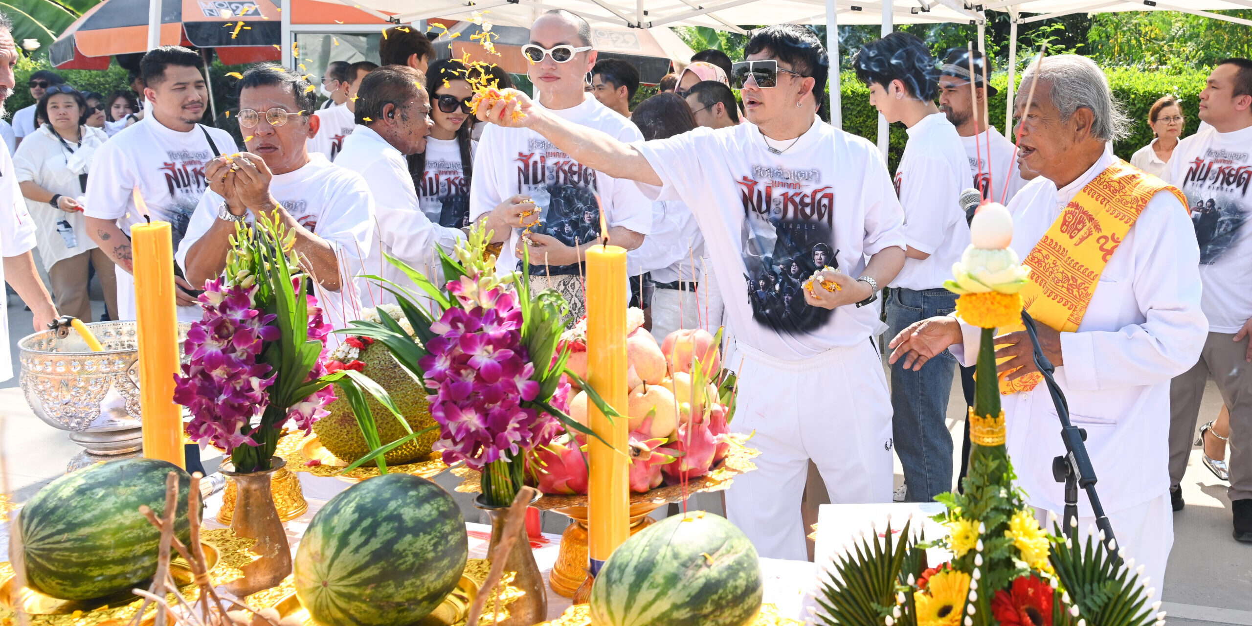 พร้อมด้วยทัพนักแสดง อาทิ รงค์-จตุรงค์ พลบูรณ์, โก๊ะตี๋-เจริญพร อ่อนละม้าย, ติช่า-กันติช่า ชุมมะ, โต้ง-อัจฉริยะ ศรีทา, แม่ครูจำปา แสนพรม, ติ๊ก กลิ่นสี-ชาญณรงค์ ขันทีท้าว, โดม เพชรธำรงชัย, เจน ญาณทิพย์, ยศ-เรืองยศ สีโสฬสสกุล, สมปอง นครไธสง (อดีตพระมหาสมปอง), หน่อย-ณัฐนี สิทธิสมาน (ป้าปอบหยิบ), ผัดไท-ดีใจ ดีดีดี, เอิร์ธ-ธวัช พรรัตนประเสริฐ ฯลฯ มาร่วมพิธีกันคับคั่ง ณ โมโนเน็กซ์ ออฟฟิศ ถนนชัยพฤกษ์ จ.นนทบุรี