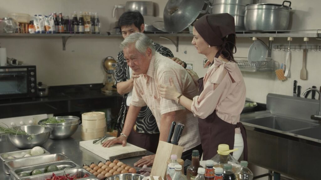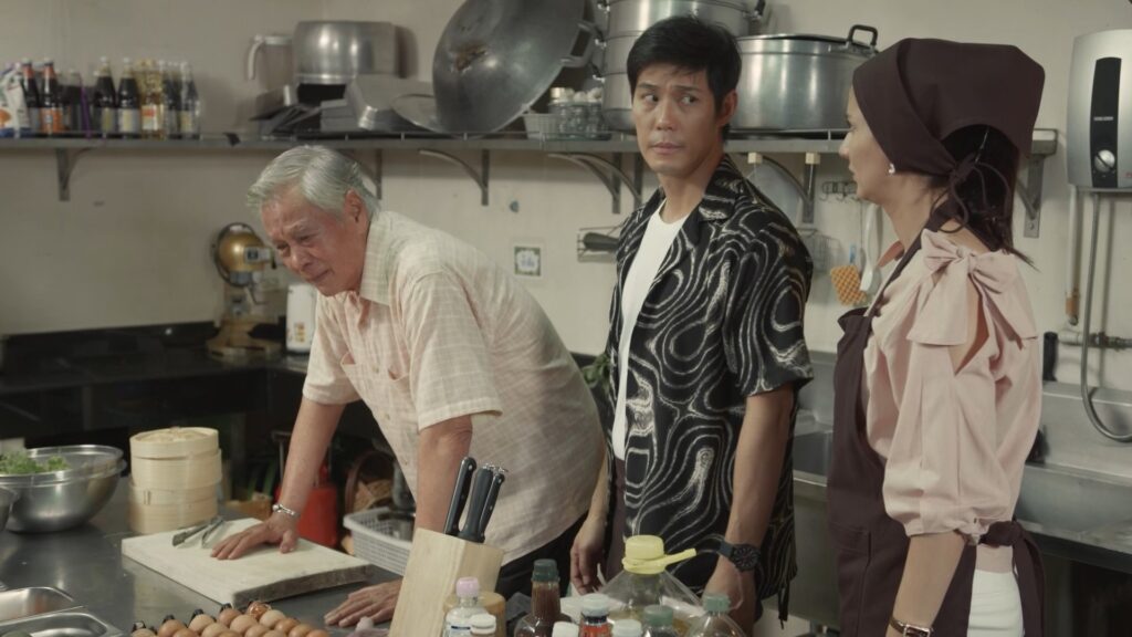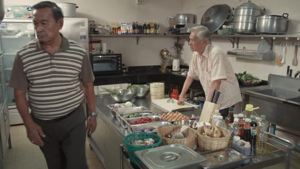 ฉากนี้ผู้กำกับฯ ฝุ่น ใช้ห้องครัวของโรงเรียนแสนสนุกไตรทักษะ แถวประชาอุทิศ เซ็ตขึ้นเป็นห้องครัว “ร้านรถราง” โดยในฉากนี้นอกจากมีสองนักแสดงรุ่นใหญ่มากฝีมือ อาหนิง กับ อาหมู เข้าฉากแล้ว ก็ยังมี สินธร (ภูริต พลอยมีค่า) ศิริรัตน์ (เปิ้ล ภารดี) ที่รับบทลูกชายและลูกสะใภ้ของ อารักษ์ เข้าร่วมฉากนี้ด้วย ซึ่งสองนักแสดงรุ่นใหญ่ต้องปะทะคารมกันอย่างรุนแรงอีกครั้ง เพราะอารักษ์คิดว่าทุกคนทรยศ หักหลังเขาหมด ตัวละครสองตัวที่เป็นเพื่อนรักกัน แต่สุดท้ายต้องมาแตกหักกันอีก เพราะมีความคิดที่แตกต่างกันโดยสิ้นเชิง ก่อนถ่ายผู้กำกับฯ ก็ขอให้มีการซักซ้อมบทและดูภาพมุมกล้องกันก่อน จากนั้นเมื่อเดินกล้องถ่ายทำ นักแสดงสองท่านก็สาดอารมณ์ใส่กันแบบไม่มีใครยอมใคร อาหนิงแสดงได้โกรธจัดถึงกับหลั่งน้ำตาออกมา ก่อนจะจบฉากนี้โดยภูริต และเปิ้ล ภารดี รีบเข้ามาดูพ่อ งานนี้บอกได้เลยว่าสมเป็นนักแสดงคุณภาพจริง ๆ