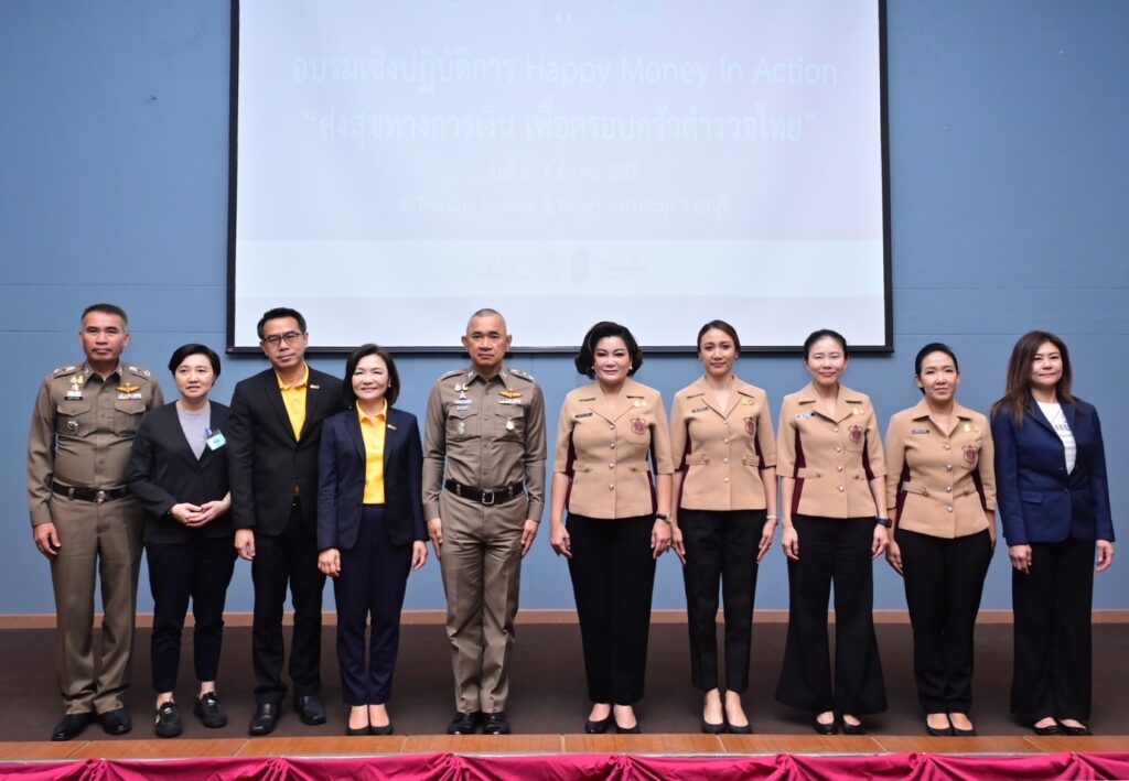 คุณนิภาพรรณ สุขวิมล นายกสมาคมแม่บ้านตำรวจ เปิดเผยว่า สมาคมแม่บ้านตำรวจ ได้ดำเนินโครงการ Money Management & Investment ร่วมกับตลาดหลักทรัพย์แห่งประเทศไทย ต่อเนื่องมาตั้งแต่ปี 2564 ปีนี้เข้าปีที่ 4 แล้ว ซึ่งที่ผ่านมาได้พัฒนาความรู้ด้านการเงินให้กับนักเรียนนายร้อยตำรวจ นักเรียนนายสิบตำรวจ และข้าราชการตำรวจวัยทำงานจนถึงวัยใกล้เกษียณอย่างต่อเนื่อง รวมทั้งสิ้น 3,584 คน ปีนี้ได้พัฒนาหลักสูตรการอบรมให้ความรู้ทางการเงิน 1 วัน สู่กิจกรรม Happy Money In action “ค่ายส่งสุขทางการเงิน เพื่อครอบครัวตำรวจไทย” ร่วมกับตลาดหลักทรัพย์แห่งประเทศไทย 3 วัน 2 คืน มุ่งเน้นการให้ความรู้และสร้างบุคคลต้นแบบ และต้นกล้าทางการเงินให้กับกลุ่มผู้ที่มีความตั้งใจในการลดภาระหนี้สินอย่างมีนัยสำคัญ จำนวน 30 ครอบครัว ซึ่งเป็นบุคคลที่มีสถานะทางการเงินดีขึ้น มีเป้าหมายทางการเงิน มีวินัยทางการเงินเพิ่มขึ้น ทำให้หนี้สินที่มีลดลงอย่างต่อเนื่อง มีความสุขทางการเงินมากขึ้น สามารถเป็นแบบอย่างที่ดีให้กับเพื่อนตำรวจได้อย่างเป็นรูปธรรม