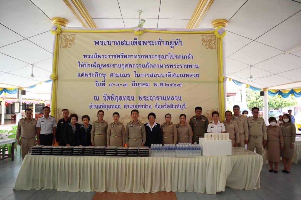 วันที่ 7 มีนาคม 2567 เวลา 10.00 น. นายสุเมธ ธีรนิติ ผู้ว่าราชการจังหวัดสิงห์บุรี เป็นประธานในพิธีถวายภัตตาหารและเครื่องเขียนพระราชทานของพระบาทสมเด็จพระเจ้าอยู่หัวแด่พระภิกษุสามเณร ในการสอบบาลีสนามหลวง ครั้งที่ 1 ครั้งหลัง ปี พ.ศ.2567 โดยมี นางวาสนา ธีรนิติ นายกเหล่ากาชาดจังหวัดสิงห์บุรี นางสาวกันตรัตน์ เริ่มสูงเนิน ปลัดจังหวัดสิงห์บุรี/เลขานุการเหล่ากาชาดจังหวัดสิงห์บุรี ผู้ช่วยนายกเหล่ากาชาดจังหวัดสิงห์บุรี กรรมการเหล่ากาชาดจังหวัดสิงห์บุรี สมาชิกชมรมแม่บ้านมหาดไทยจังหวัดสิงห์บุรี นายอำเภอ หัวหน้าส่วนราชการ ข้าราชการ เจ้าหน้าที่เหล่ากาชาดจังหวัดสิงห์บุรี และประชาชน ร่วมพิธีดังกล่าว ณ หอประชุม 100 ปี วัดพิกุลทอง อำเภอท่าช้าง จังหวัดสิงห์บุรี