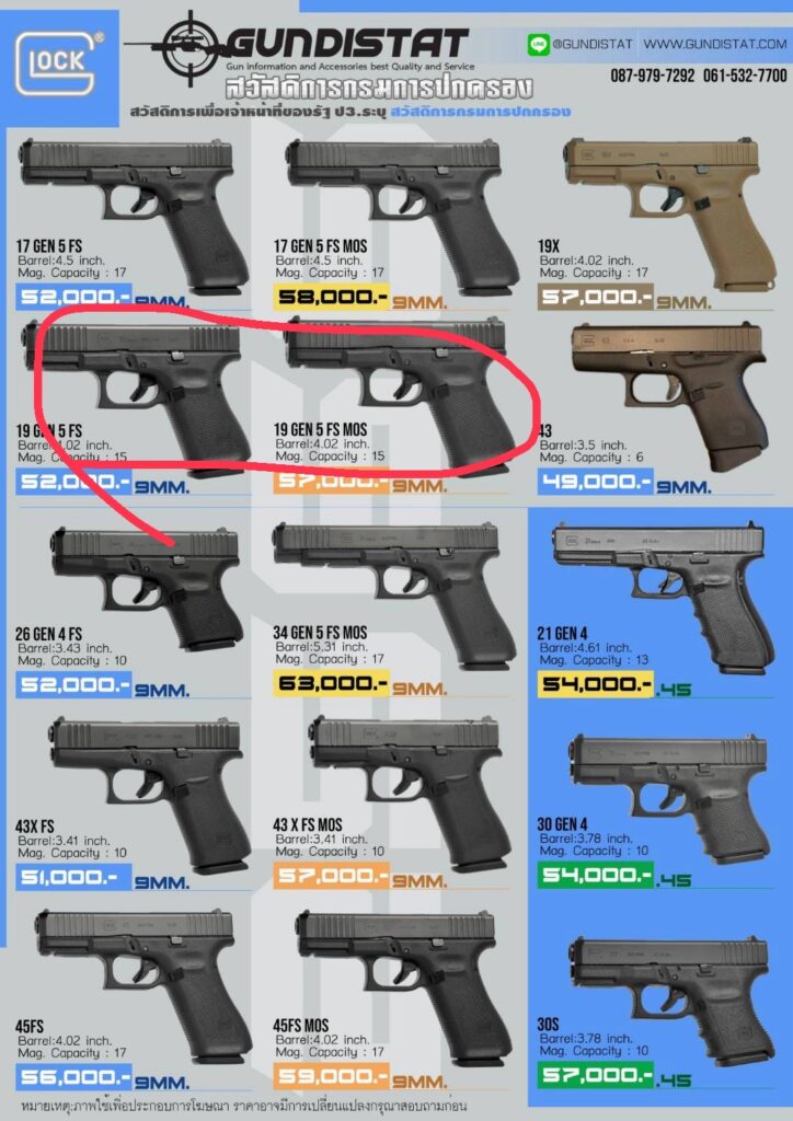 ๑. อาวุธปืนพกสั้น ชนิดกึ่งอัตโนมัติ ยี่ห้อ GLOCK ขนาด ๙ มม. เลขหมายประจำปืน BNDU586 เครื่องหมายทะเบียนปืน กท๖๓๐๓๙๕๖ ซื้อจาก ห้างหุ้นส่วนจำกัด ปืนศิวะ ใบอนุญาตจากหน่วยงาน อำเภอถลาง เลขที่ใบอนุญาต ๒๕๖๓๐๐๐๐๐๒๐๑ แบบบุคคลธรรมดา ออกเมื่อ ๗ ตุลาคม ๒๕๖๓ ผู้ลงนามอนุญาต นายสุวิทย์ สุริยะวงศ์ นายอำเภอถลาง