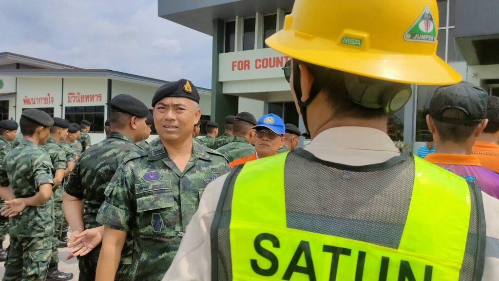 พ.อ.ชัยวุฒิ พรมทอง ผู้บังคับกองพันทหารราบที่ 2 กรมทหารราบที่ 5 กล่าวว่า กองทัพบกได้ประสานความร่วมมือจากทุกหน่วยงานที่มีศักยภาพ ร่วมแรงร่วมใจในการช่วยเหลือพี่น้องประชาชนที่ประสบปัญหาภัยแล้ง ขาดแคลนน้ำในการอุปโภคบริโภค เพื่อเป็นการบรรเทาความเดือดร้อนในเบื้องต้น ในการรับมือสถานการณ์ภัยแล้งที่จะเกิดขึ้น ใน 7 อำเภอของจังหวัดสตูล ได้มีความพร้อมในการกระจายกำลังและร่วมสนับสนุนในการช่วยเหลือชาวบ้านทีประสบภัย สามารถติดต่อหน่วยงานหลักอย่าง ปภ. ท้องถิ่น หรือหน่วยงานใกล้บ้าน รวมทั้งกำลังทหาร ที่มีความพร้อมทั้งกำลังพลและรถบรรทุกน้ำ สามารถติดต่อได้ตลอด 24 ชม.