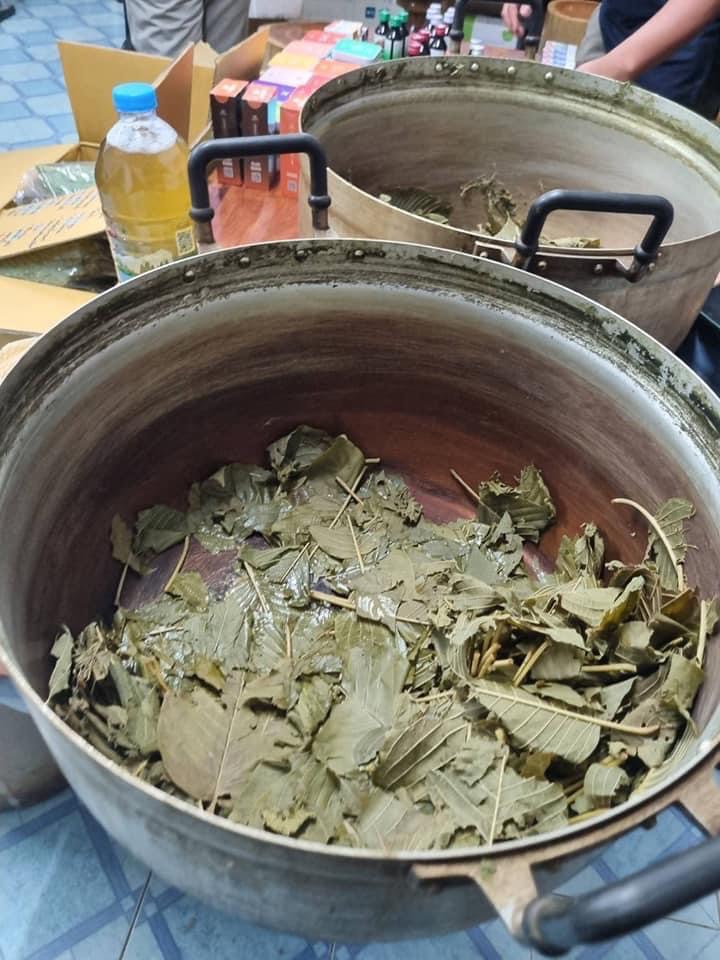 18.หม้อสแตนเลส ใช้ในการต้มใบกระท่อม จำนวน 2 ใบ โดยพบกากใบกระท่อมที่ต้มแล้วอยู่ภายในหม้อทั้ง