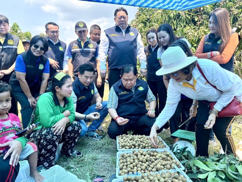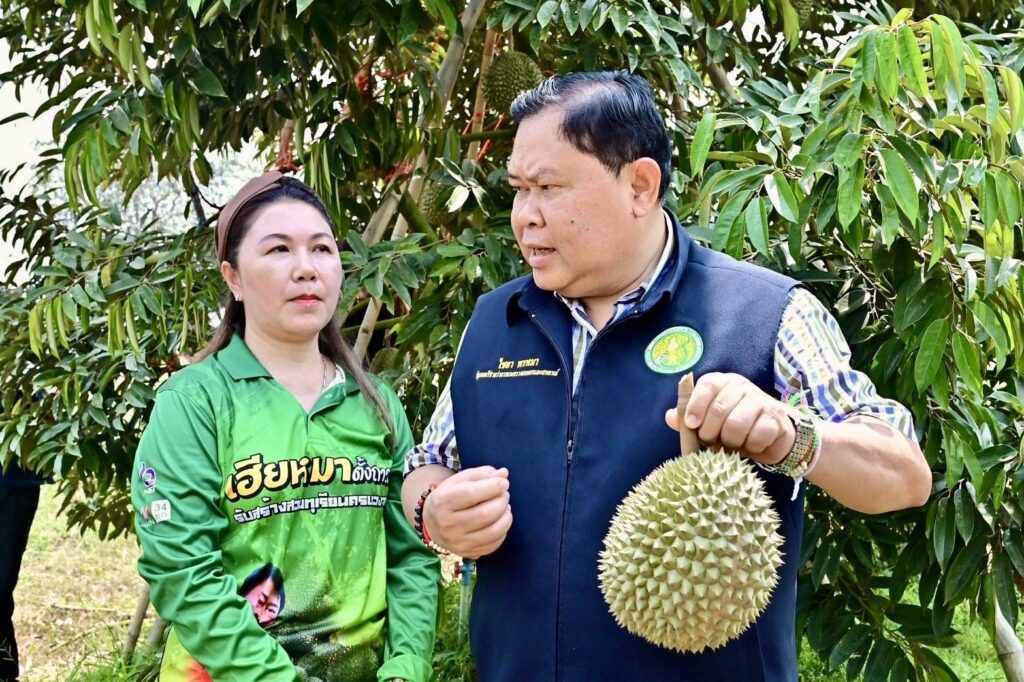 นอกจากนี้ได้ลงพื้นที่เยี่ยมชมสวนลำไย และสวนทุเรียนหนามดำ ซึ่งราคาดี เป็นพันธุ์ทุเรียนที่ชาวต่างชาติกำลังให้ความสนใจ กิโลกรัมละ 800 กว่าบาท พร้อมให้กำลังใจเกษตรกรชาวสวนผลไม้ให้พัฒนาสินค้าเกษตรคุณภาพ สามารถส่งออกไปยังประเทศที่มีกำลังซื้อสูง และเชื่อมั่นว่าผลไม้ไทยยังคงเป็นที่ต้องการอันดับ 1 ในตลาดโลก สามารถสร้างรายได้ให้เกษตรกรและกอบโกยเม็ดเงินเข้าประเทศได้จำนวนมหาศาลอีกด้วย