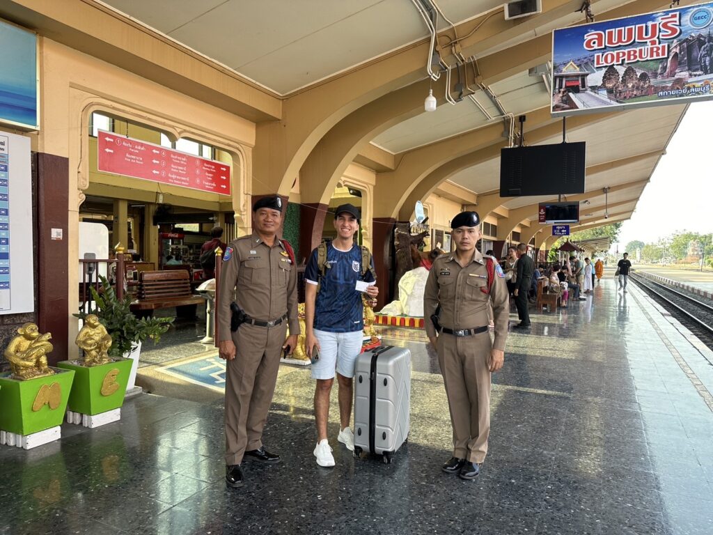 ตำรวจท่องเที่ยวลพบุรีได้เดินทางมาให้การช่วยเหลือ เมื่อมาถึงได้สอบถามนักท่องเที่ยวดังกล่าวทราบว่าต้องการจะเดินทางไปพบเพื่อนที่เดินทางมากับรถทัวร์ และนัดหมายกันที่ จ.พิษณุโลก ตำรวจท่องเที่ยวจึงได้แนะนำและอำนวยความสะดวกพาไปสถานีรถไฟเพื่อซื้อตั๋วโดยสารรถไฟให้ไปพบเพื่อนยังที่นัดหมายที่สถานีรถไฟพิษณุโลกต่อไป นักท่องเที่ยวพอใจ และกล่าวขอบคุณตำรวจท่องเที่ยว