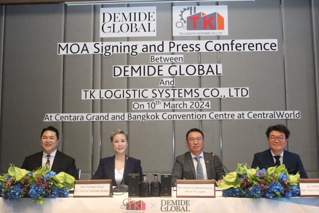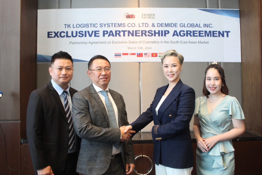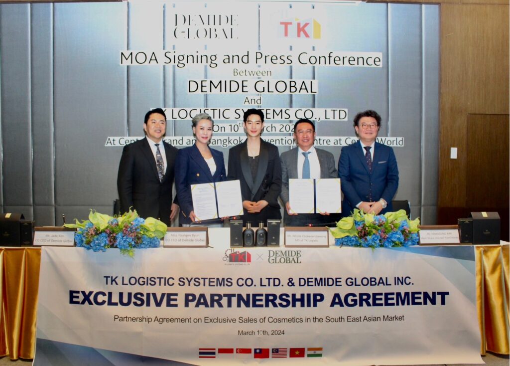 วันที่ 10 มีนาคม 2567 : บริษัท ทีเค โลจิสติก ซิสเต็มส์ จำกัด มีความยินดีที่จะประกาศการลงนาม ข้อตกลงความร่วมมือกับ Demide Global Inc.,ซึ่งเป็นผู้นำระดับโลกที่มีชื่อเสียงด้านการผลิตและจำหน่าย เครื่องสำอางพรีเมี่ยมจากเกาหลีใต้ ข้อตกลงสำคัญนี้ จะช่วยส่งเสริมการจัดจำหน่ายเครื่องสำอางแบรนด์ระดับ พรีเมี่ยมในวงกว้าง โดยเน้นไปที่ห้างสรรพสินค้าและไฮเปอร์มาร์เก็ตโดยเฉพาะ