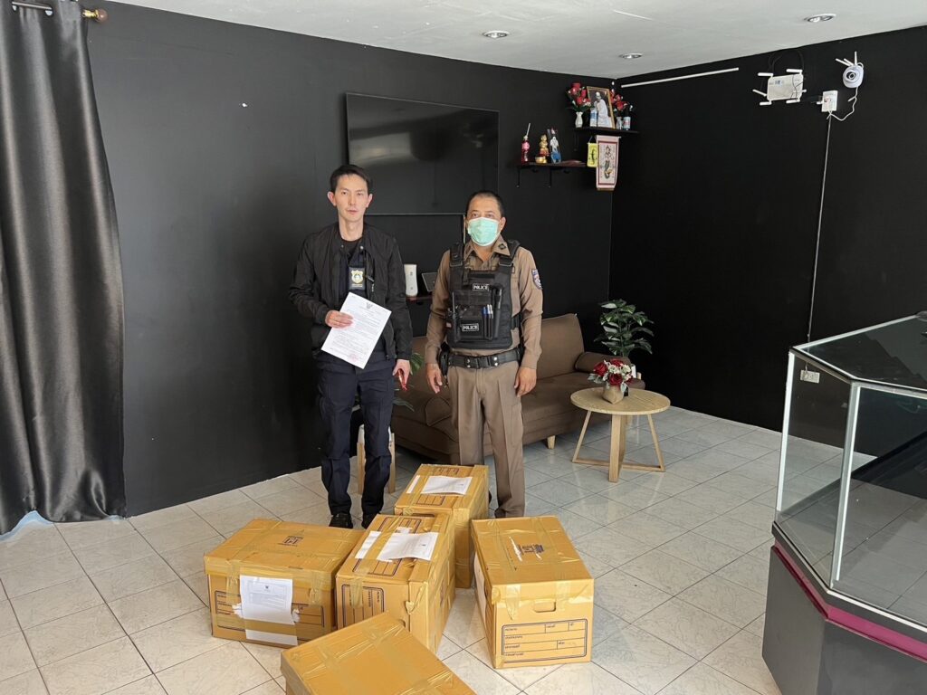 3.ร้านค้าตั้งอยู่ริมถนนหมู่บ้านบัวทอง พบบุหรี่ไฟฟ้า จำนวน 388 ชิ้น น้ำยาบุหรี่ไฟฟ้า 341 ชิ้น และอุปกรณ์อื่นๆ จำนวน 161 ชิ้น รวมจำนวน 890 ชิ้น มูลค่า 170,000 บาท