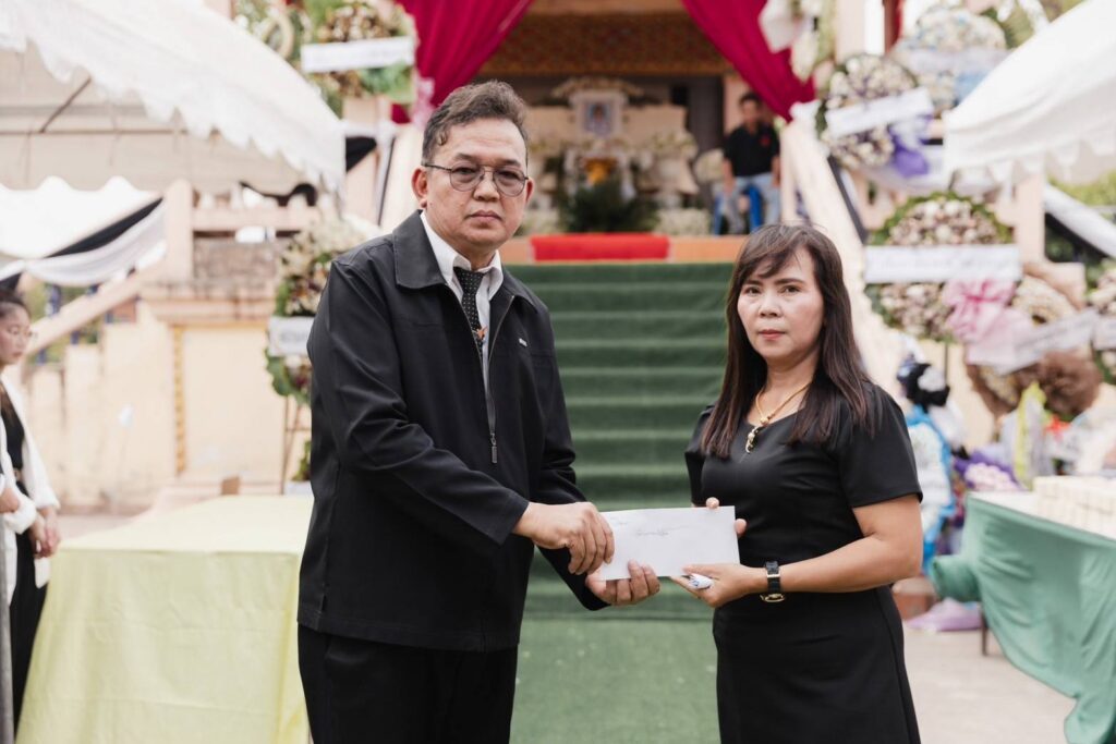 ทั้งนี้นายสนอง แท่นสูงเนิน ซึ่งเป็นผู้สื่อข่าวประจำจังหวัดลพบุรี เป็นสามีผู้วายชนม์ และกว้างขวาง มีคนรู้จักทั่วถึง และเคยช่วยเหลือหน่วยงานต่างๆ ทั้งจังหวัดลพบุรี จึงมำให้ประชาชนเดินทางร่วมงานมากมาย