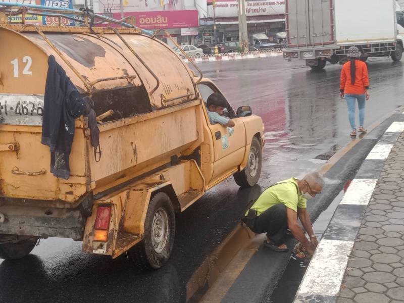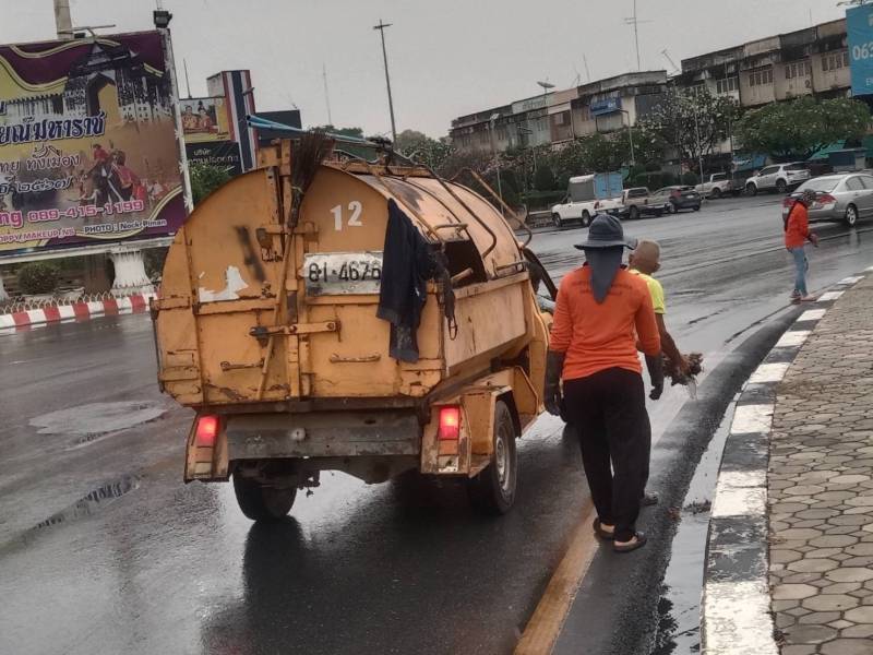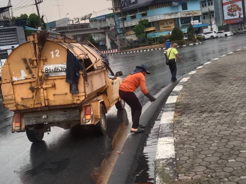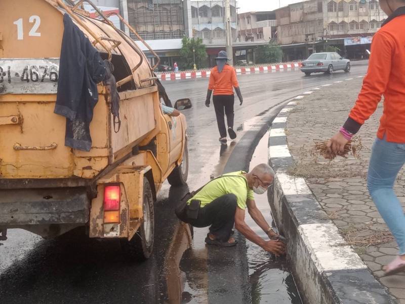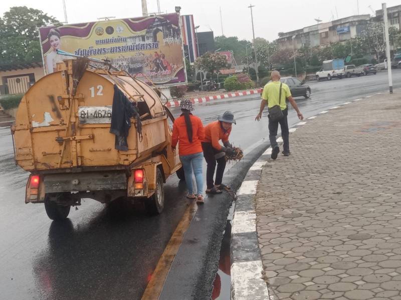 นายจำเริญ สละชีพ นายกเทศมนตรีเมืองลพบุรี สั่งการให้เจ้าหน้าที่กองสาธารณะสุขและสิ่งแวดล้อม เทศบาลเมืองลพบุรี ดำเนินการเก็บกวาดขยะบริเวณจมูกท่อระบายน้ำ รอบวงเวียนศรีสุริโยทัย (วงเวียนสระแก้ว) เพื่อให้น้ำระบายได้ทัน เมื่อเวลาฝนตก ไม่ส่งผลให้เกิดปัญหาน้ำท่วมขัง