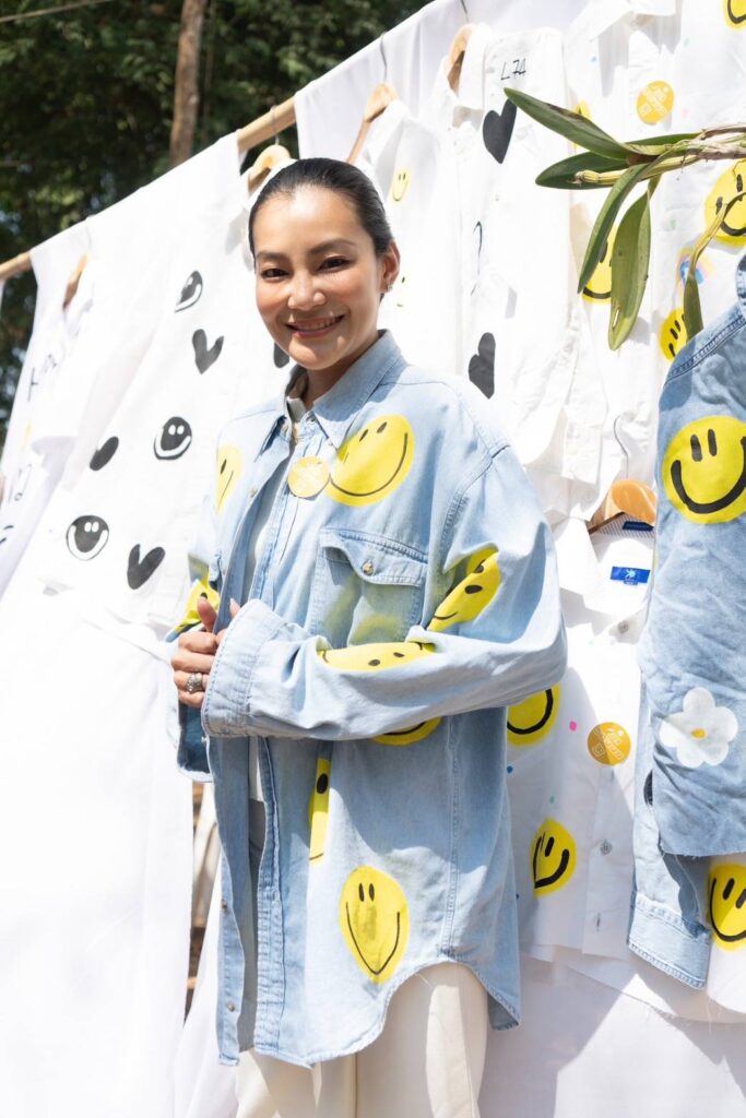 หลังเสร็จภารกิจเหล่าคนบันเทิงก็ได้รับเสื้อยิ้มสวยๆ จาก คุณมิ้งค์-ภูมิอุรา คงสุข เจ้าของแบรนด์เสื้อผ้า Merry Ming ที่มีเอกลักษณ์เป็นของตัวเองคือ รอยยิ้มสีเหลืองสดใส ซึ่งสาวๆ ก็บอกว่า “ชอบมาก” และเผยความรู้สึกว่า