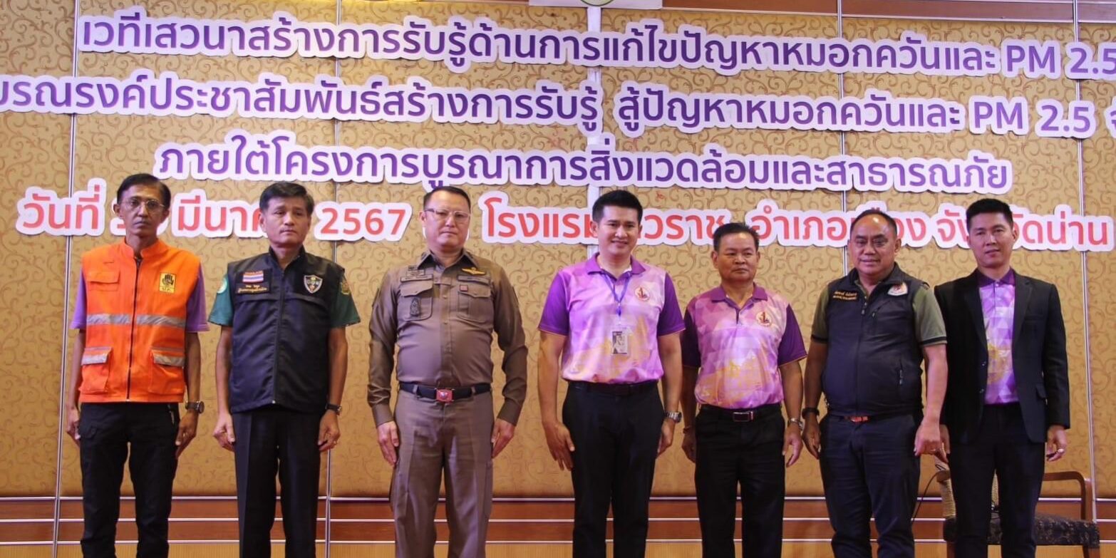 วันที่ 13 มีนาคม 2567 เวลา 13.30 น. ที่ ห้องประชุมแกรนด์บอลรูม โรงแรมเทวราช อำเภอเมืองน่าน จังหวัดน่าน นายชัยนรงค์ วงศ์ใหญ่ ผู้ว่าราชการจังหวัดน่าน เป็นประธานในการเปิดกิจกรรมรณรงค์ประชาสัมพันธ์สร้างการรับรู้ สู้ปัญหาหมอกควันและPM 2.5 จังหวัดน่าน ในวันนี้ ปัญหาไฟป่า หมอกควัน และฝุ่นละอองขนาดเล็ก (PM2.5) ในพื้นที่จังหวัดน่านมีแนวโน้มเพิ่มสูงขึ้น ทั้งจำนวนจุดความร้อน (Hotspot) ค่าปริมาณฝุ่นละอองขนาดเล็ก อยู่ในระดับเกินค่ามาตรฐาน อยู่ในระดับที่เป็นอันตรายต่อสุขภาพ สาเหตุส่วนหนึ่งเกิดจากการเผาวัชพืช เผาตอซังเพื่อเตรียมพื้นที่ทำการเกษตร และการเผาเพื่อหาของป่า การเพิ่มขึ้นของไฟป่าที่เกิดขึ้นในบ้านเราเองและประเทศเพื่อนบ้าน ประกอบกับในปี 2567 เกิดปรากฏการณ์เอลนีโญ ทำให้เกิดสถานการณ์ภาวะแห้งแล้งอย่างรุนแรงและยาวนาน จนถึงเดือนพฤษภาคม ทั้งนี้สืบเนื่องจากความแปรปรวนของสภาพภูมิอากาศโลก อันเนื่องมาจากการเปลี่ยนแปลงสภาพภูมิอากาศ ทำให้การคาดการณ์สภาพอากาศและสถานการณ์ไฟป่าในระยะยาวทำได้ยาก ทั้งนี้ ปัญหาจากไฟป่าและหมอกควันมีผลกระทบต่อสุขภาพของประชาชน สิ่งแวดล้อม และเศรษฐกิจโดยรวม จึงจำเป็นอย่างยิ่งที่จะต้องเฝ้าติดตามและเฝ้าระวังอย่างใกล้ชิดและต่อเนื่อง ในวันนี้ก็เป็นโอกาสดีที่ทั้งส่วนราชการ ภาคประชาชน องค์กรอิสระ และสื่อมวลชน จะได้มีการแลกเปลี่ยนเพื่อสร้างองค์ความรู้ เพื่อกระจายข้อมูลสู่พี่น้องชาวจังหวัดน่าน ในการร่วมมือกันในการบริหารจัดการป้องกัน และแก้ไขปัญหาหมอกควันและไฟป่า การเผาในที่โล่งและฝุ่นละอองขนาดเล็กของจังหวัดน่าน ตลอดจนการเฝ้าระวังสุขภาพของประชาชนในช่วงสถานการณ์ฝุ่นละอองขนาดเล็กวิกฤติ โดยมี นายมานิต ธนะวงศ์นักวิชาการสิ่งแวดล้อมชำนาญการพิเศษ รักษาราชการแทน ผู้อำนวยการสำนักงานทรัพยากร ธรรมชาติและสิ่งแวดล้อมจังหวัดน่าน กล่าวว่า ในการจัดกิจกรรมรณรงค์ประชาสัมพันธ์สร้างการรับรู้ สู้ปัญหาหมอกควันและPM 2.5 จังหวัดน่าน ภายใต้โครงการแก้ไขปัญหาไฟป่าและหมอกควันจังหวัดน่าน สืบเนื่องจากจังหวัดน่าน ประสบปัญหาหมอกควันอย่างรุนแรงมาอย่างต่อเนื่อง ตรวจพบแนวโน้มการเพิ่มสูงขึ้นของปริมาณฝุ่นละอองขนาดไม่เกิน 2.5 ไมครอน (PM2.5) เกินค่ามาตรฐาน ต่อเนื่องมาจนถึงปัจจุบัน และจากข้อมูลภาพถ่ายดาวเทียมตรวจพบจุดความร้อน (Hotspot) จำนวนมาก สภาพอากาศแห้งและนิ่ง ฝุ่นละอองสามารถแขวนลอยอยู่ในบรรยากาศได้นาน ไม่สามารถแพร่กระจายออกไปได้ และไม่ตกลงสู่พื้น ก่อให้เกิดสภาพ ฟ้าหลัว มีหมอกควัน ปกคลุม ทัศนวิสัยต่ำกว