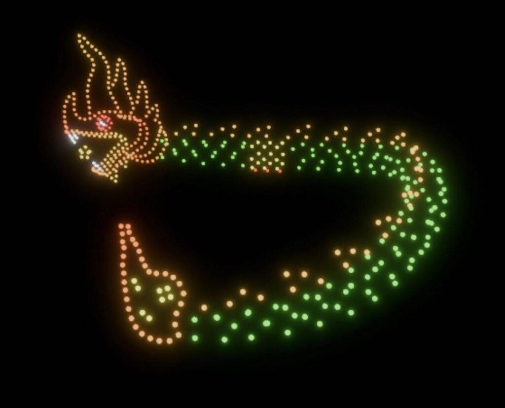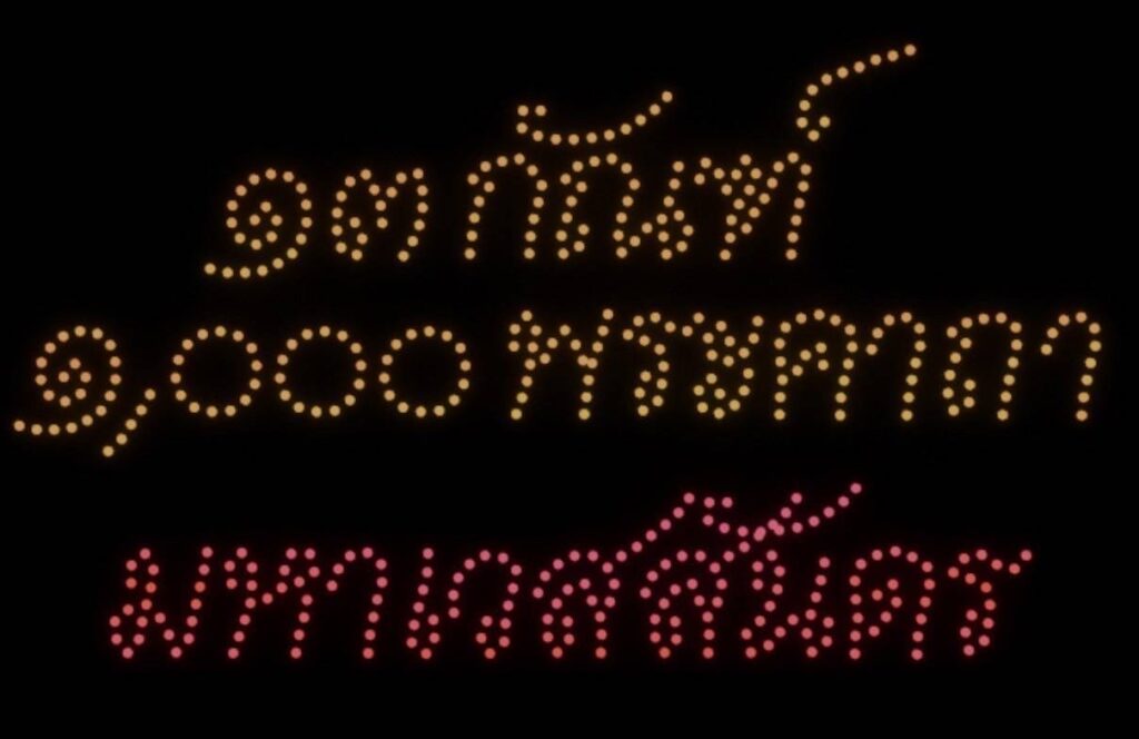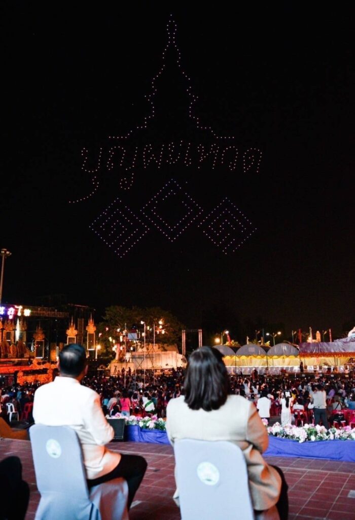 ในคืนวันที่ 15 มีนาคม 2566 เวลา 21.00 น. ณ เวทีกลางลานสาเกตนคร บึงพลาญชัย จ.ร้อยเอ็ด ได้มีการแสดงบินโดรนแปรอักษร ในงาน “มหาทานบารมี ประเพณีบุญผะเหวด ร้อยเอ็ด ประจำปี 2567” โดยจัดแสดงบินโดรนแปรอักษรจำนวน 500 ลำ ประกอบด้วย