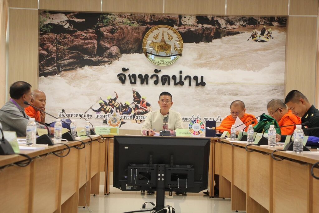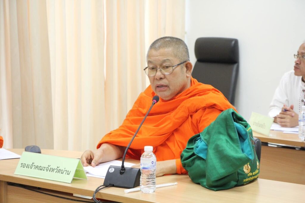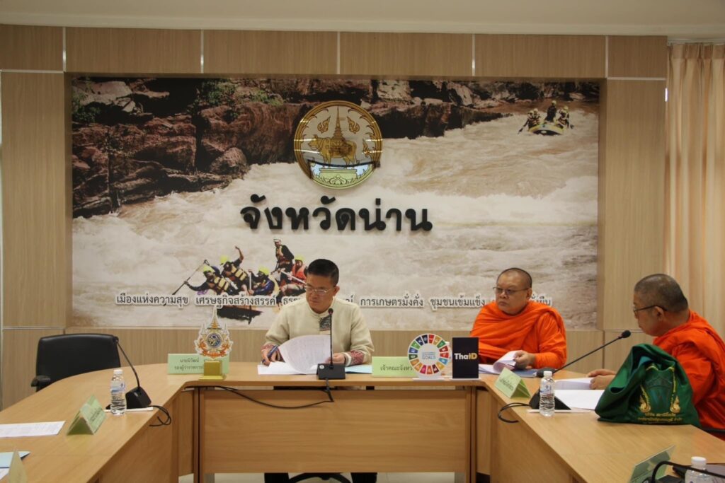 ณ ห้องประชุมเจ้าฟ้าอัตถวรปัญโญ ชั้น 2 ศาลากลางจังหวัดน่าน พระราชศาสนาภิบาล เจ้าคณะจังหวัดน่าน เป็นประธานฝ่ายสงฆ์ พร้อมด้วย พระสุนทรมุนี รองเจ้าคณะจังหวัดน่าน พระครูสิรินันทวิทย์ เจ้าคณะอำเภอเมืองน่าน นายนิวัฒน์ งามธุระ รองผู้ว่าราชการจังหวัดน่าน ประธานฝ่ายฆารวาส หัวหน้าส่วนราชการ ภาคส่วนที่เกี่ยวข้อง และผู้แทนจากอำเภอต่างๆที่จะเข้าร่วม