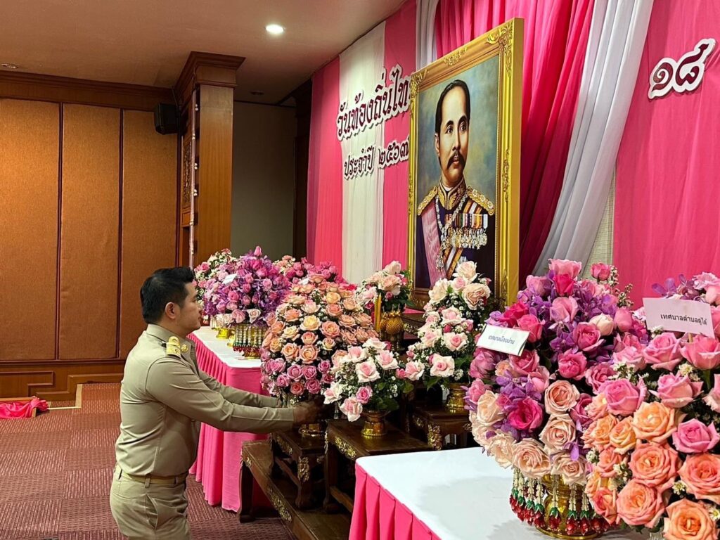 จังหวัดน่าน ประกอบพิธีวางพานพุ่มถวายราชสักการะพระบาทสมเด็จพระจุลจอมเกล้าเจ้าอยู่หัว รัชกาลที่ 5 เนื่องในโอกาส “วันท้องถิ่นไทย” ประจำปี 2567 เพื่อน้อมรำลึกถึงพระมหากรุณาธิคุณที่ทรงวางรากฐานการพัฒนาท้องถิ่นรูปแบบการปกครองตนเองให้มีความมั่นคงตราบจนปัจจุบัน