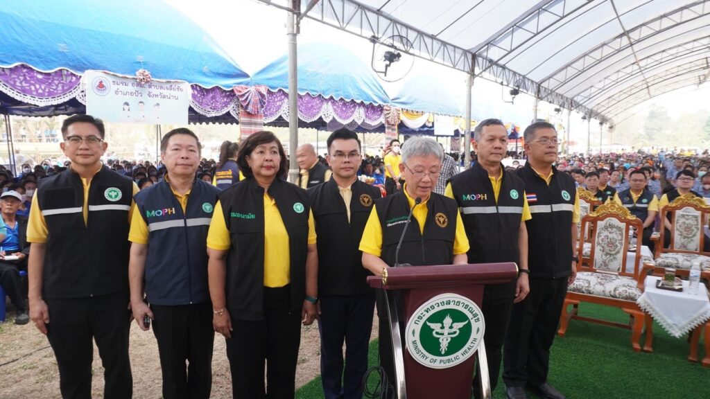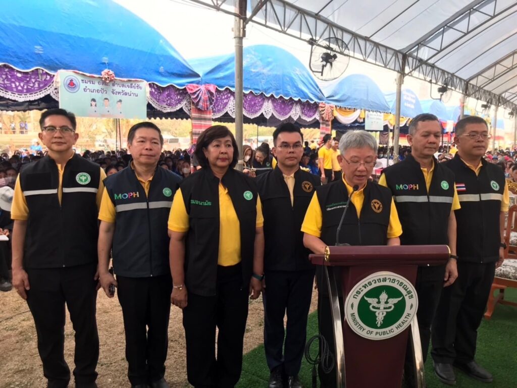 วันนี้ (18 มีนาคม 2567) ที่สนามกีฬาโรงเรียนปัว อ.ปัว จ.น่าน นพ.ชลน่าน ศรีแก้ว รัฐมนตรีว่าการกระทรวงสาธารณสุขเปิดงาน “เชิดชูเกียรติ อสม. จาก อสม.คุณภาพ สู่ Health Rider” มอบเกียรติบัตรและเสื้อสามารถให้กับ อสม.ดีเด่นระดับจังหวัด/ระดับเขตสุขภาพที่ 1, 2, 3 /ระดับภาคเหนือ และระดับชาติ รวม 11 สาขา และมอบชุด Rider ให้กับ Health Rider 15 อำเภอ โดยมี นพ.โอภาส การย์กวินพงศ์ ปลัดกระทรวงสาธารณสุข นายเทวา ปัญญาบุญ รองผู้ว่าราชการจังหวัดน่าน คณะผู้บริหาร หัวหน้าส่วนราชการ อสม. และจิตอาสาในพื้นที่ เข้าร่วมงานกว่า 2,600 คน