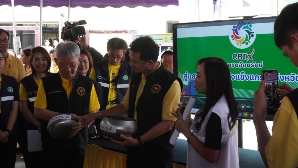 วันที่ 18 มีนาคม 2567 ณ องค์การบริหารส่วนตำบลตาลชุม อำเภอเวียงสา จังหวัดน่าน นายแพทย์ชลน่าน ศรีแก้ว รัฐมนตรีว่าการกระทรวงสาธารณสุข พร้อมด้วยคณะฯ ลงพื้นที่ตรวจเยี่ยม CBTx ชุมชนล้อมรักษ์ สู่แสงใหม่ หัวใจแข็งแกร่ง จังหวัดน่าน โดยมี นายชัยนรงค์ วงศ์ใหญ่ ผู้ว่าราชการจังหวัดน่าน หัวหน้าส่วนราชการ ผู้แทนทุกหน่วยงานที่ร่วมปฏิบัติการลดความรุนแรงของปัญหายาเสพติด และประชาชนชาวน่าน ร่วมให้การต้อนรับ