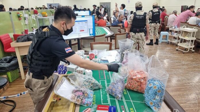 ส่วนด้านในเป็นนักเล่นที่กระเป๋าหนัก เพราะด้านในใช้ชิพที่มีราคาสูงหลักแสนบาท นอกจากนี้ยังพบว่ามีห้องวีไอพีอีก 3 ห้อง ส่วนอาคารแห่งนี้ต้องตรวจสอบอีกครั้งว่าเช่าหรือเป็นของเจ้าของบ่อนเอง ส่วนตู้เซฟตอนนี้เปิดออกแล้วมีเงินสดจำนวนมากเป็นหลักล้าน ส่วนชิพน่าจะทีจำนวนมากกว่า 10 ล้านบาท