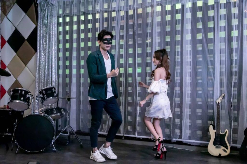 และในขณะที่ ฤทัย รอคู่ซ้อมเต้น หนุ่มคล้าว ก็จับผลัดจับผลูสวมหน้ากาก และขึ้นเวทีโชว์สเต็ปกับ ฤทัย โดย ฤทัย หารู้ไม่ว่าผู้ชายที่ซ้อมเต้นด้วย ไม่ใช่คู่ซ้อมตัวจริง แต่ทั้งคู่ก็ยังโชว์สเต็ปการเต้นอย่างสวยงามไปจนจบ และเมื่อ คล้าว ได้สบตากับ ทองกวาว เจ้าตัวก็รีบหนีไปจากตรงนั้นทันที เกือบโป๊ะแตกแร้วววว…..