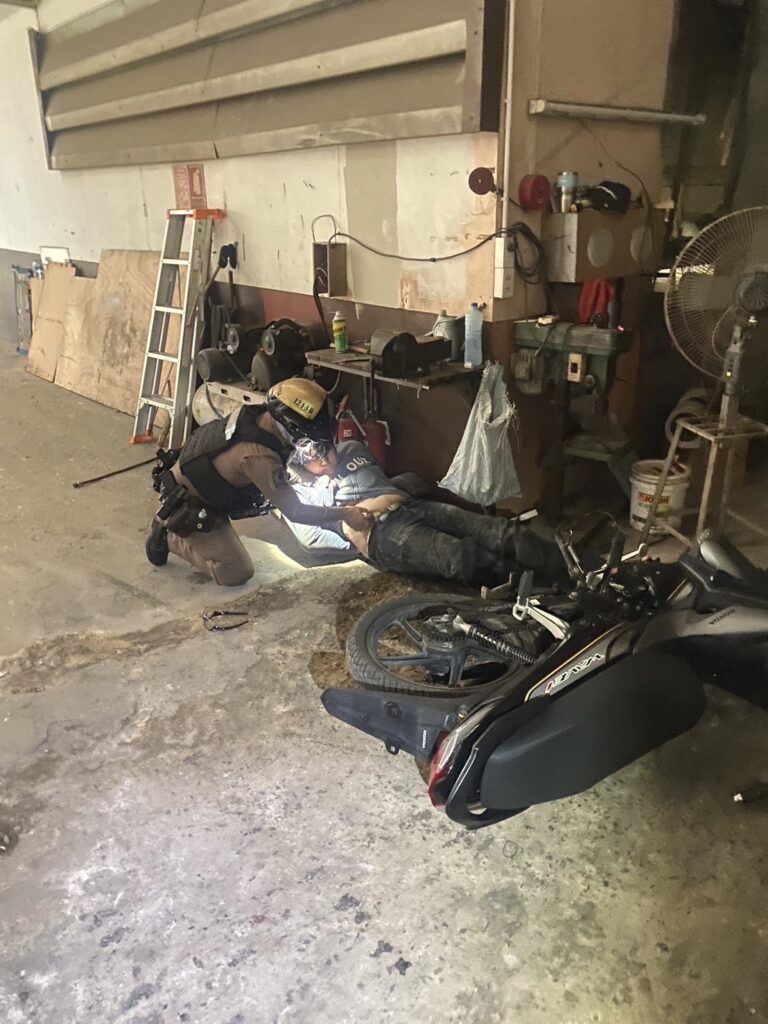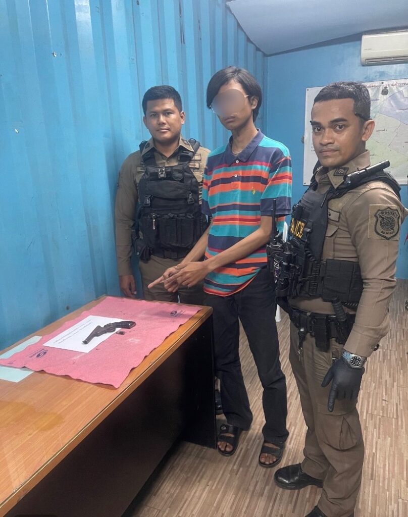 สืบเนื่องจากเจ้าหน้าที่ได้ออกตรวจพื้นที่รับผิดชอบผ่านมาถึงบริเวณท้ายซอยลาดปลาเค้า 66 พบวัยรุ่นชาย 2 คนได้ขับขี่รถจักรยานยนต์ ยี่ห้อฮอนด้า รุ่นเวฟ สีเทา-ดำ ไม่ติดแผ่นป้ายทะเบียน อยู่บริเวณดังกล่าว โดยคนนั่งซ้อนท้าย มีท่าทางพิรุธ ลุกลี้ลุกลน ต้องสงสัย น่าจะมีสิ่งผิดกฎหมายซุกซ่อนอยู่ เมื่อเห็นเจ้าหน้าที่ตำรวจ วัยรุ่นชายทั้ง 2 คนพยายามจะหลบหนี เจ้าหน้าที่จึงเรียกให้หยุดเพื่อขอทำการตรวจสอบ แต่ไม่ยอมหยุดรถ และเร่งเครื่องขับหลบหนี เจ้าหน้าที่จึงขับรถไล่ติดตามไป จนมาถึงบริเวณกลางซอยลาดปลาเค้า 66 วัยรุ่นทั้ง 2 คน ได้ทิ้งรถและวิ่งหลบหนีเข้าไปภายในบริษัทแห่งหนึ่ง เจ้าหน้าที่จึงเข้าชาร์ตจับกุมตัวไว้ได้ ตรวจค้นตัวคนขี่จยย.พบอาวุธปืนไทยประดิษฐ์ (แบบลูกโม่)จำนวน 1 กระบอก เหน็บอยู่บริเวณเอวขอบกางเกงด้านหน้า และเครื่องกระสุน .32 จำนวน 3 นัดซุกซ่อนอยู่ในกระเป๋าเสื้อคลุมแขนยาวสีเทาแบบมีฮู้ดที่สวมใส่อยู่ ส่วนคนนั่งซ้อนท้าย พบอาวุธปืนไทยประดิษฐ์ 1 กระบอกพร้อมเครื่องกระสุนปืนบรรจุในรังเพลิง เหน็บอยู่บริเวณเอวขอบกางเกง เจ้าหน้าที่จึงได้ยึดของกลางไว้เป็นหลักฐาน
