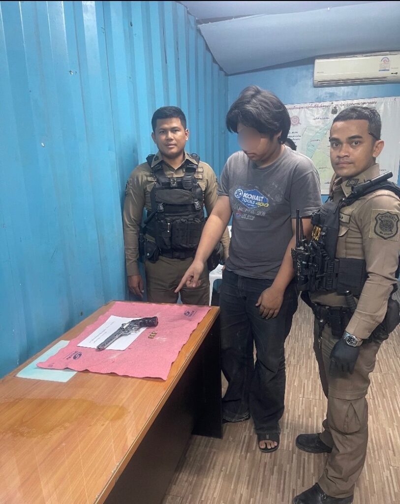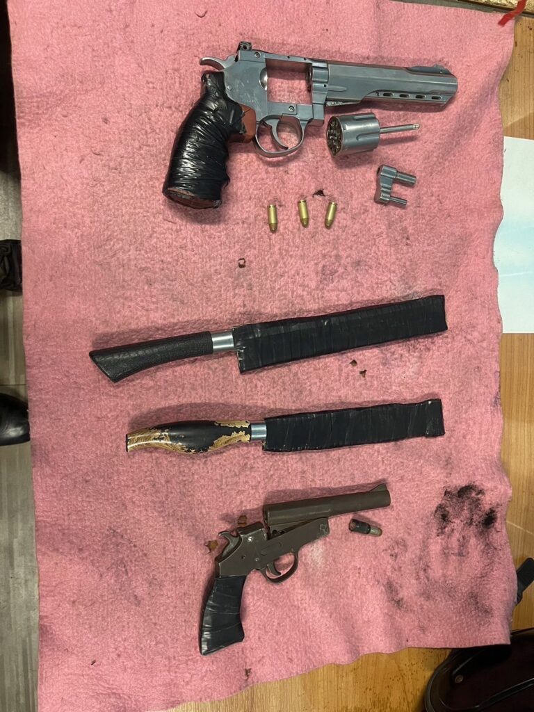 เมื่อเวลา 01.00 น.วันที่ 21 มี.ค.67 พ.ต.อ.อนันต์ วรสาตร์ ผกก.สน.บางเขน สั่งการให้ พ.ต.ท.สรรพิชญ์ ศิริสุนทร รอง ผกก.ป. พร้อมด้วย พ.ต.ท.ประทีป คำมี สวป., ร.ต.อ.สุวพิชญ์ อินทร์สิงค์ รอง สวป.และชุดสายตรวจ สน.บางเขน ร่วมทำการจับกุมนายน็อต(นามสมมุติ)อายุ 16 ปีและนายโต(นามสมมุติ)อายุ 17 ปีพร้อมของกลางอาวุธปืนไทยประดิษฐ์(แบบลูกโม่) 1 กระบอก เครื่องกระสุนปืนขนาด .32 จำนวน 3 นัด และอาวุธปืนไทยประดิษฐ์(แบบหักลำ) 1 กระบอก เครื่องกระสุนปืนขนาด .38 จำนวน 1 นัดบรรจุในรังเพลิง สถานที่จับกุมบริเวณภายในซอยลาดปลาเค้า 66 แขวงอนุสาวรีย์ เขตบางเขน กทม.