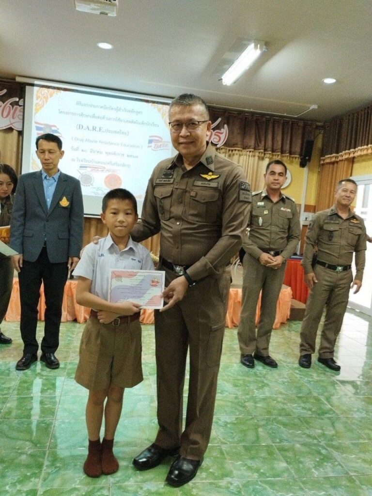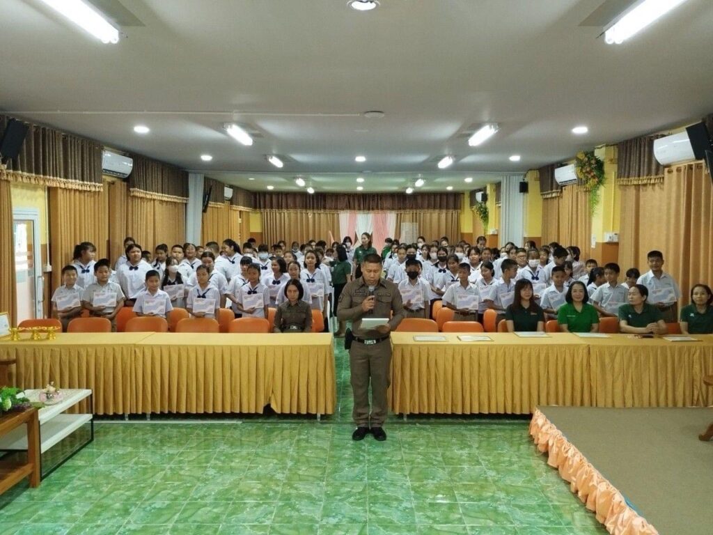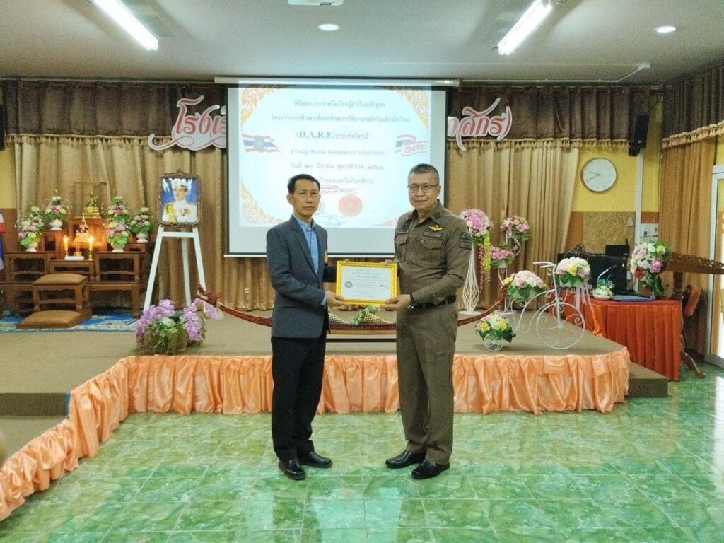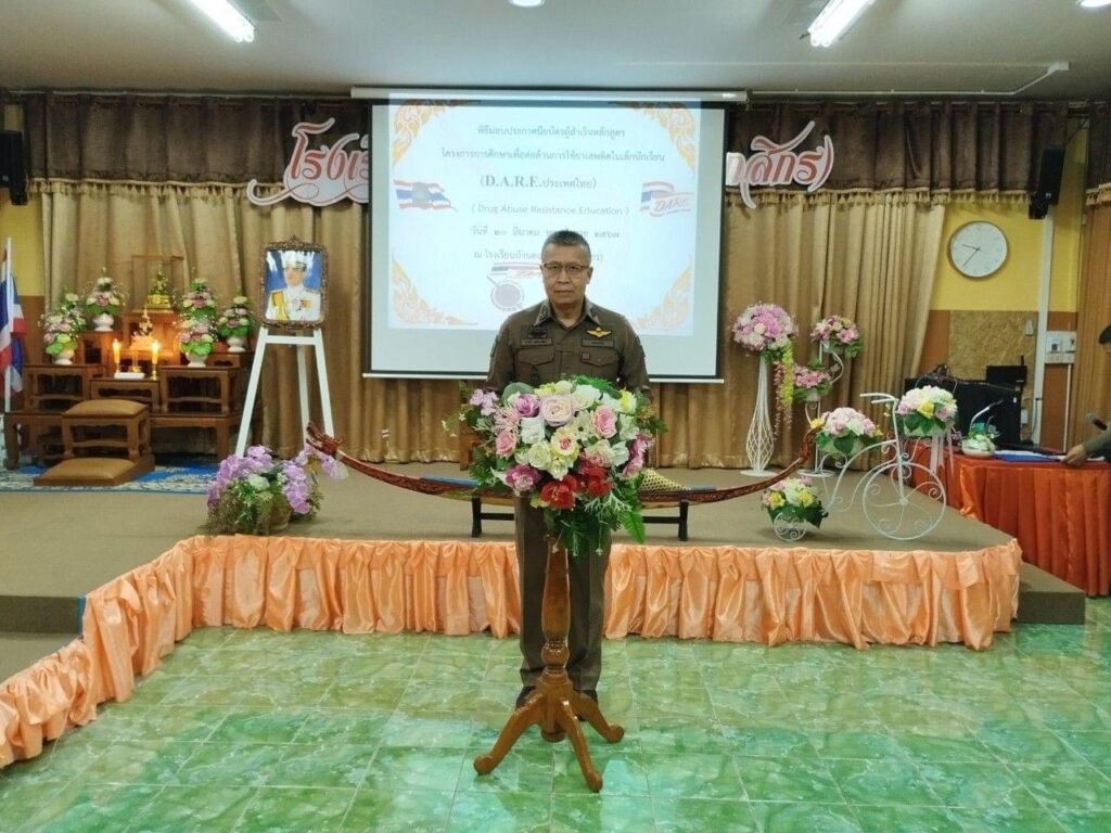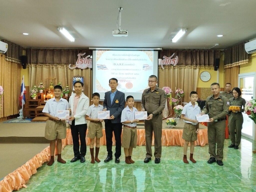 วันที่ 20 มีนาคม 2567 เวลา 09.00 น. พ.ต.อ.ชาตรี หทยะวัฒน์ ผกก.สภ.เมืองน่าน พ.ต.ต.ธรรมศักดิ์ ณ น่าน สวป.สภ.เมืองน่าน , พ.ต.ต.กานต์ณัฐกรณ์ กุณา สวป.(ชส.) สภ.เมืองน่าน เป็นประธานในพิธีปิดการอบรมโครงการการศึกษาเพื่อต่อต้านการใช้ยาเสพติดในเด็กนักเรียน(D.A.R.E.ประเทศไทย) มอบเกียรติบัตรให้กับสถานศึกษา ผู้อำนวยการฯ คณะครู ผู้ให้การสนับสนุนโครงการฯ และมอบใบประกาศนียบัตรให้แก่นักเรียนที่ผ่านการอบรมตามหลักสูตร D.A.R.E. โดยมี