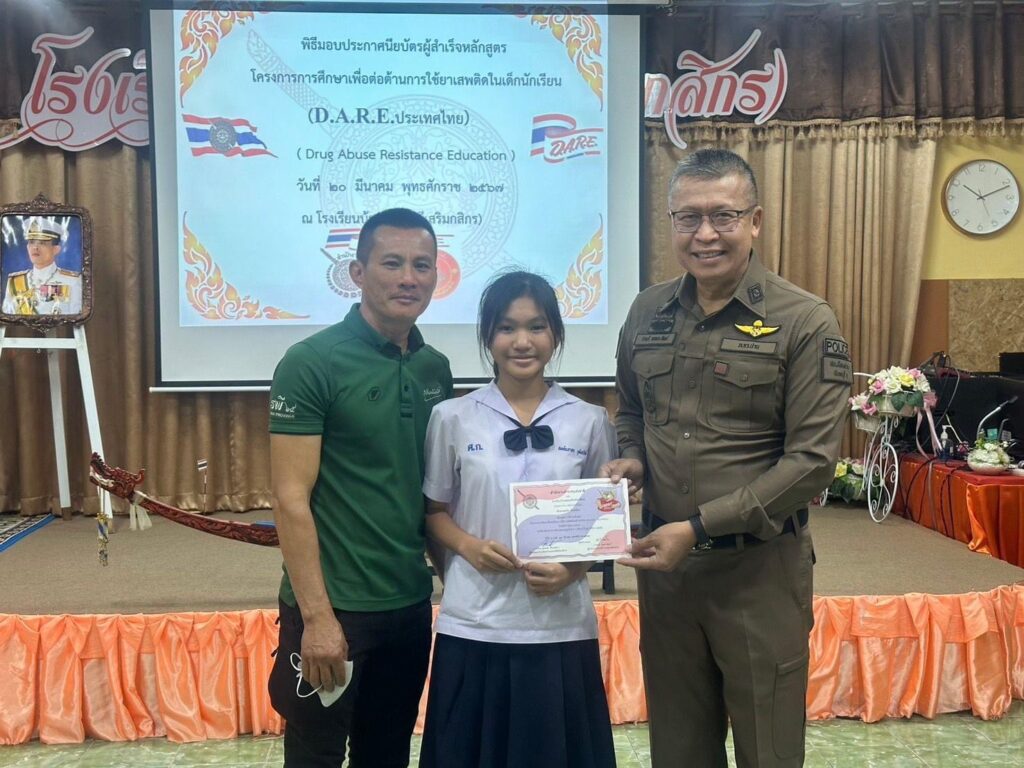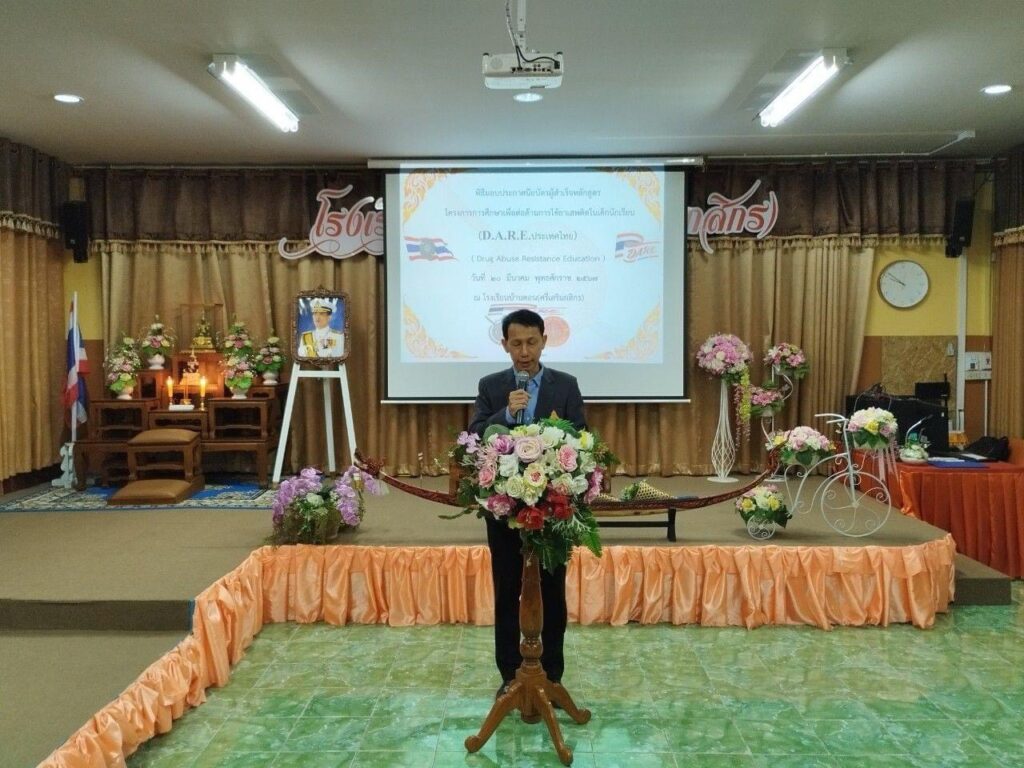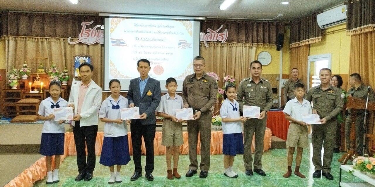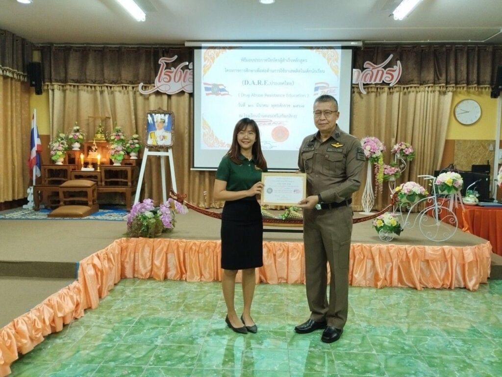 วันที่ 20 มีนาคม 2567 เวลา 09.00 น. พ.ต.อ.ชาตรี หทยะวัฒน์ ผกก.สภ.เมืองน่าน พ.ต.ต.ธรรมศักดิ์ ณ น่าน สวป.สภ.เมืองน่าน , พ.ต.ต.กานต์ณัฐกรณ์ กุณา สวป.(ชส.) สภ.เมืองน่าน เป็นประธานในพิธีปิดการอบรมโครงการการศึกษาเพื่อต่อต้านการใช้ยาเสพติดในเด็กนักเรียน(D.A.R.E.ประเทศไทย) มอบเกียรติบัตรให้กับสถานศึกษา ผู้อำนวยการฯ คณะครู ผู้ให้การสนับสนุนโครงการฯ และมอบใบประกาศนียบัตรให้แก่นักเรียนที่ผ่านการอบรมตามหลักสูตร D.A.R.E. โดยมี