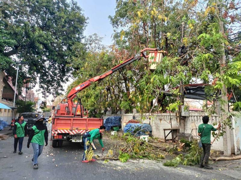 นายจำเริญ สละชีพ นายกเทศมนตรีเมืองลพบุรี สั่งการให้เจ้าหน้าที่งานสวนสาธารณะ สำนักช่าง เทศบาลเมืองลพบุรี นำเครื่องจักร และอุปกรณ์ ดำเนินการ ตัดแต่งกิ่งไม้และต้นไม้ หลังวัดชีป่าสิตาราม และถนนฝรั่งเศส อ.เมืองลพบุรี จ.ลพบุรี เพื่อให้เกิดความสวยงาม เป็นระเบียบเรียบร้อย สวยงาม สะอาดตา และป้องกันการหักโค่นเมื่อมีลมกระโชกแรง
