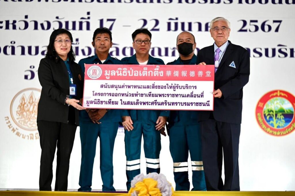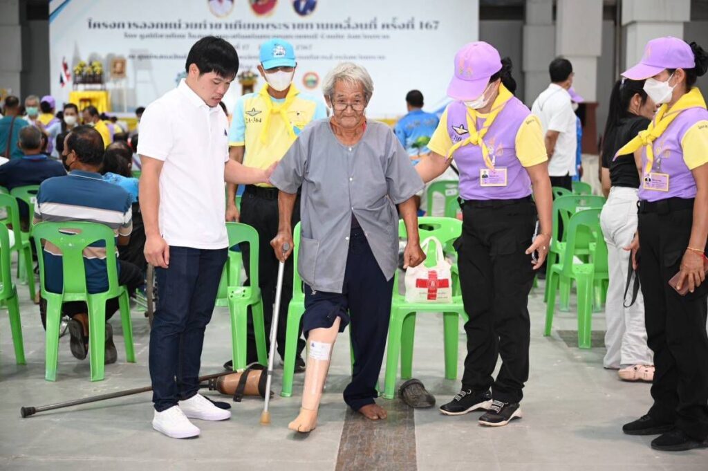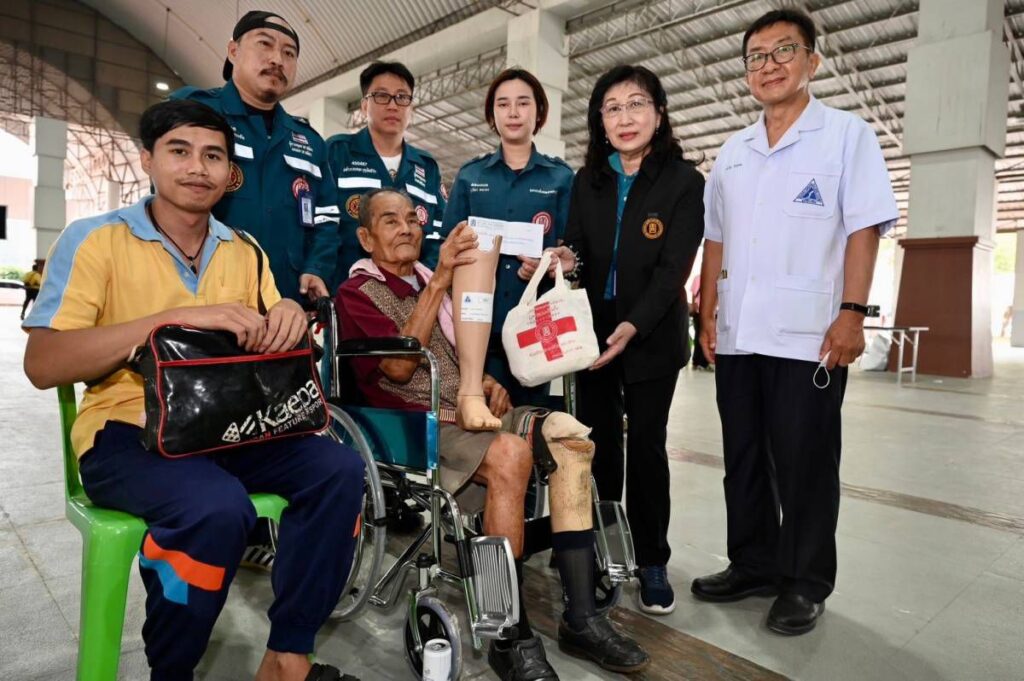 วันนี้ (วันศุกร์ที่ 22 มีนาคม 2567) มูลนิธิป่อเต็กตึ๊ง นำโดย นางสาวดวงชุตา ติยะพจนพรกุล ผู้ช่วยผู้จัดการฝ่ายสังคมสงเคราะห์ พร้อมด้วย นายชุมพล บุญภักดี ผู้ช่วยหัวหน้าแผนกสาธารณภัย ร่วมกับมูลนิธิขาเทียม ในสมเด็จพระศรีนครินทราบรมราชชนนี นำทีมลงพื้นที่ มอบค่าพาหนะ พร้อมชุดยาฉุกเฉิน และเสื้อสำเร็จรูป ให้แก่ผู้รับขาเทียม และ ช่างทำขาเทียมอาสาสมัคร ที่เข้าร่วมโครงการออกหน่วยทำขาเทียมพระราชทานเคลื่อนที่ ครั้งที่ 167 รวม 160 คน รวมงบประมาณทั้งสิ้น 110,176 บาท (หนึ่งแสนหนึ่งหมื่นหนึ่งร้อยเจ็ดสิบหกบาทถ้วน) โดยมี นายณัฐพงษ์ สงวนจิตร ผู้ว่าราชการจังหวัดตราด เป็นประธานในพิธี พร้อมด้วย ร้อยเอก นายแพทย์ภูรีวรรธน์ โชคเกิด รองเลขาธิการมูลนิธิขาเทียมฯ และคณะกรรมการมูลนิธิขาเทียมฯ ร่วมในพิธี ณ ศูนย์แสดงสินค้าหนึ่งตำบลหนึ่งผลิตภัณฑ์ องค์การบริหารส่วนจังหวัดตราด อำเภอเมือง จังหวัดตราด