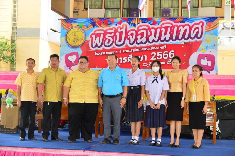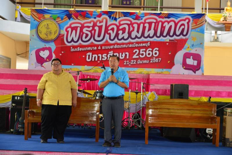 เมื่อวันศุกร์ที่ 22 มีนาคม 2567 นายจำเริญ สละชีพ นายกเทศมนตรีเมืองลพบุรี มอบให้ นายสันธนะ บัวชาติ รองนายกเทศมนตรีเมืองลพบุรี เป็นประธานกิจกรรมปัจฉิมนิเทศ นักเรียนระดับ ม.๓ และ ม.๖ ที่สำเร็จการศึกษาในปีการศึกษา ๒๕๖๖ โรงเรียนเทศบาล ๔ ระบบสาธิตเทศบาลเมืองลพบุรี โดยมี นายสมชัย อินปุระ รองนายกเทศมนตรีเมืองลพบุรี คณะสมาชิกสภาเทศบาลเมืองลพบุรี หัวหน้าส่วนราชการเทศบาลเมืองลพบุรีร่วม กิจกรรม ซึ่งมี นายภาสกร ปิ่นชัชวาลย์ ผู้อำนวยการสถานศึกษา คณะรองผู้อำนวยการสถานศึกษา คณะครู นักเรียน โรงเรียนเทศบาล ๔ ระบบสาธิตเทศบาลเมืองลพบุรี ได้ให้การต้อนรับ ร่วมถ่ายรูปเป็นที่ระลึกกับนักเรียนระดับ ม.๓ และ ม.๖ ที่สำเร็จการศึกษาในปีการศึกษา ๒๕๖๖ จำนวน ๔๗๔ คน จากนั้น นายสันธนะ บัวชาติ รองนายกเทศมนตรีเมืองลพบุรี ได้รับมอบมอบวัสดุครุภัณฑ์ ตัวแทนนักเรียนที่สำเร็จการศึกษามอบวัสดุครุภัณฑ์ ในครั้งนี้