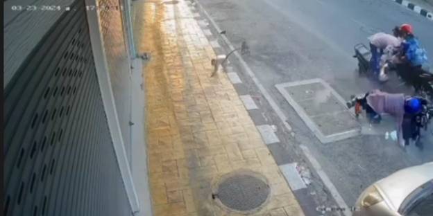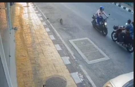 กล้องวงจรปิดจับได้อีกแล้วเจ้าจ๋อศาลพระกาฬกระโดดแย้งของชาวบ้านขณะขับรถจักยานยนต์เสียหลักชงกันเองกลับบ้านทำรถล้ม กับข้าวถูกแย้ง