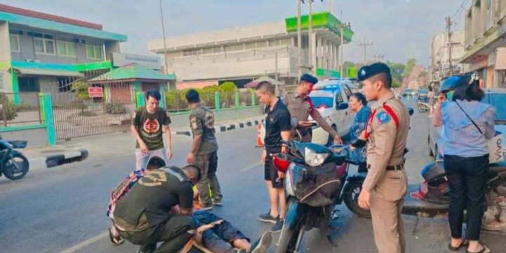ลิงลพบุรีอีกแล้วกระโดดแย่งของทำรถจักยานยนต์เสียหลักชนกันเอง ล้มบาดเจ็บ
