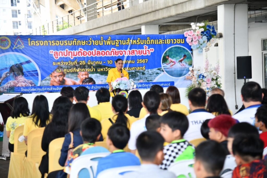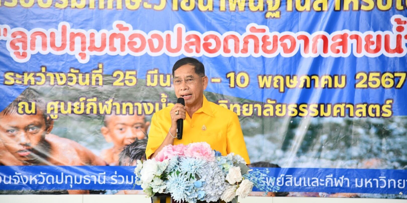 องค์การบริหารส่วนจังหวัดปทุมธานี ร่วมกับสำนักบริหารทรัพย์สินและกีฬา มหาวิทยาลัยธรรมศาสตร์ เป็นการบูรณาการร่วมกันระหว่างองค์การบริหารส่วนจังหวัดปทุมธานี ร่วมกับ สำนักงานบริหารทรัพย์สินและกีฬา มหาวิทยาลัยธรรมศาสตร์ และกำหนดจัดโครงการขึ้นระหว่างวันที่ 25 มีนาคม – 10 พฤษภาคม 2567 ณ ศูนย์กีฬาทางน้ำ มหาวิทยาลัยธรรมศาสตร์ จำนวน 5 รุ่น กลุ่มเป้าหมายจำนวน 500 คน เป็นเด็กและเยาวชนในเขตจังหวัดปทุมธานี โดยเฉพาะช่วงนี้เป็นช่วงปิดเทอมจังหวัดปทุมมีการสูญเสียชีวิตจากเด็กไปเล่นน้ำตามแม่น้ำลำคลองอยู่เป็นประจำทุกปีจึงต้องจัดโครงการป้องกันการสูญเสียที่จะเกิดขึ้นในช่วงปิดเทอมและตลอดไป
