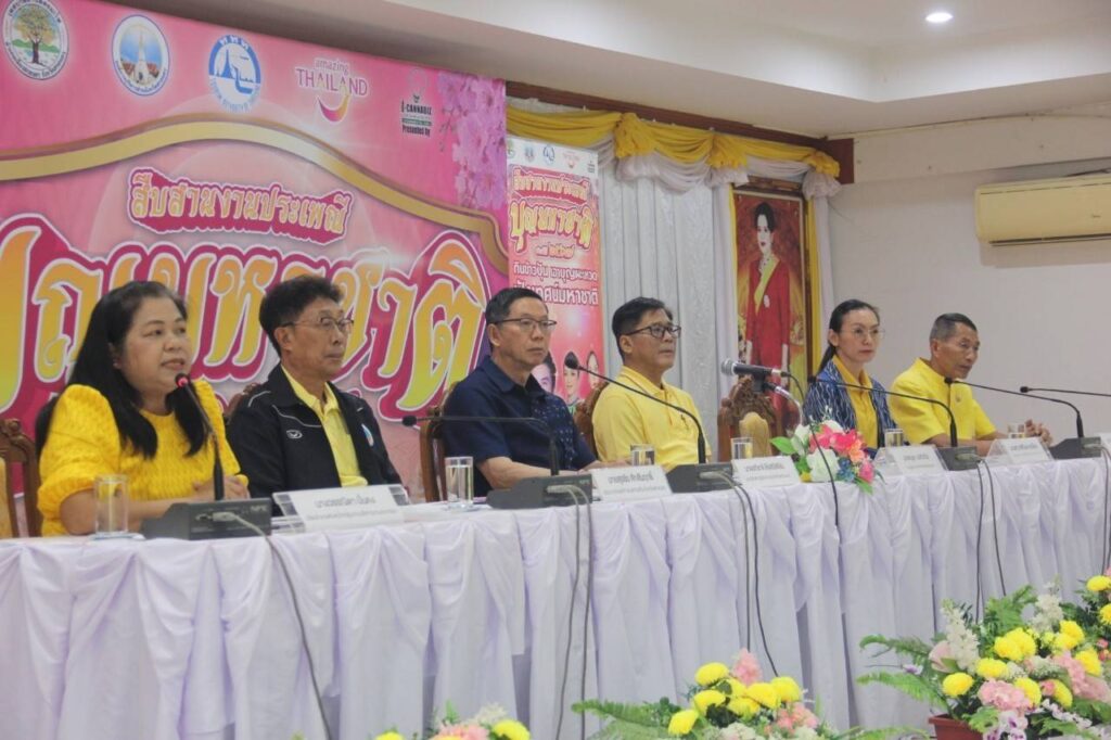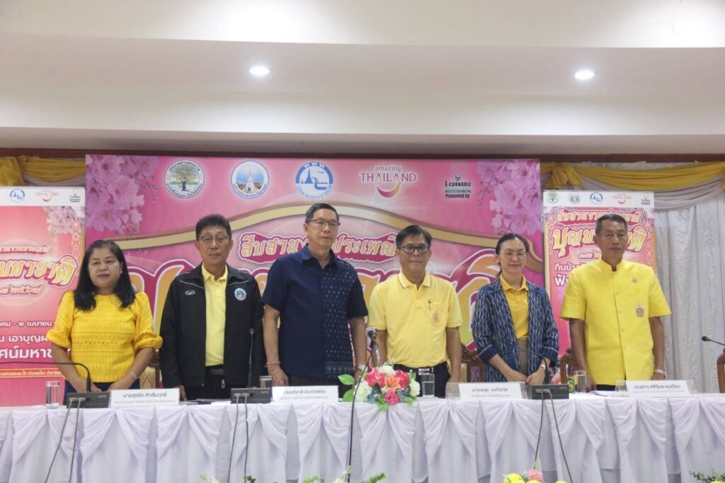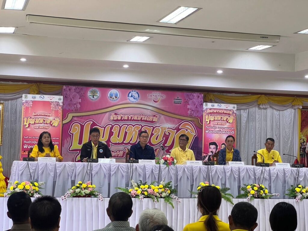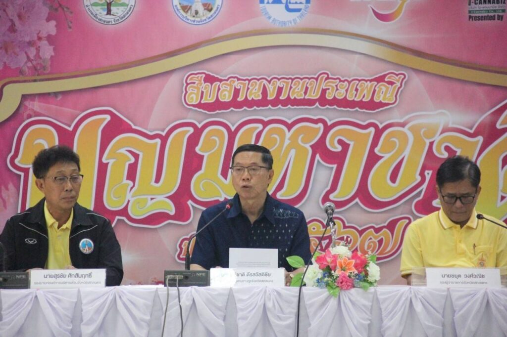 นายชยุต วงศ์วณิช รองผู้ว่าราชการจังหวัดสกลนคร พร้อมด้วย นายสุรชัย ศักสัมฤทธิ์ รองนายกองค์การบริหารส่วนจังหวัดสกลนคร , นายอภิชาติ ตีรสวัสดิชัย สมาชิกสภาผู้แทนราษฎรจังหวัดสกลนคร, นางสาว ศศิวิมล คมเฉียบ รองผู้อำนวยการการท่องเที่ยวแห่งประเทศไทย สำนักงานนครพนม, นางวรรณิดา มั่นคง ปลัดอำเภอหัวหน้ากลุ่มงานบริหารงานปกครอง และ นายณัฐพงศ์ ชุมปัญญา นายกเทศมนตรีตำบลดงมะไฟ ร่วมแถลงข่าวการจัดงาน งานบุญมหาชาติ ประจำปี 2567 (งานกินข้าวปุ้น เอาบุญผะเหวด ฟังเทศน์มหาชาติ) ที่หอประชุมสำนักงานเทศบาลตำบลดงมะไฟ อ.เมือง จ.สกลนคร เมื่อวันที่ 25 มีนาคม 2567