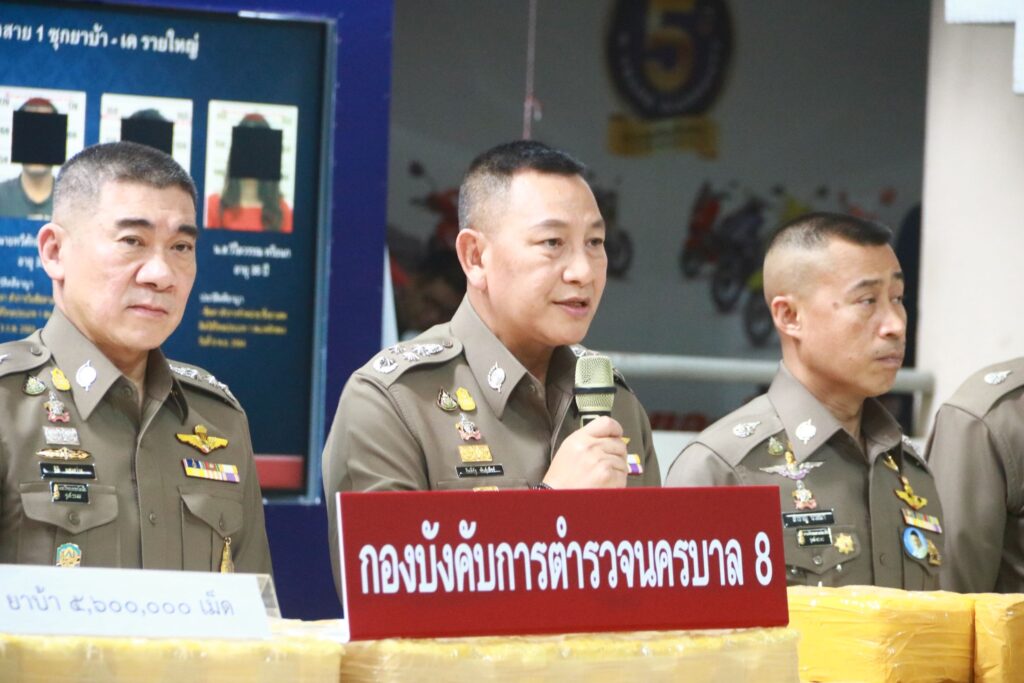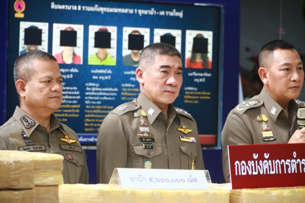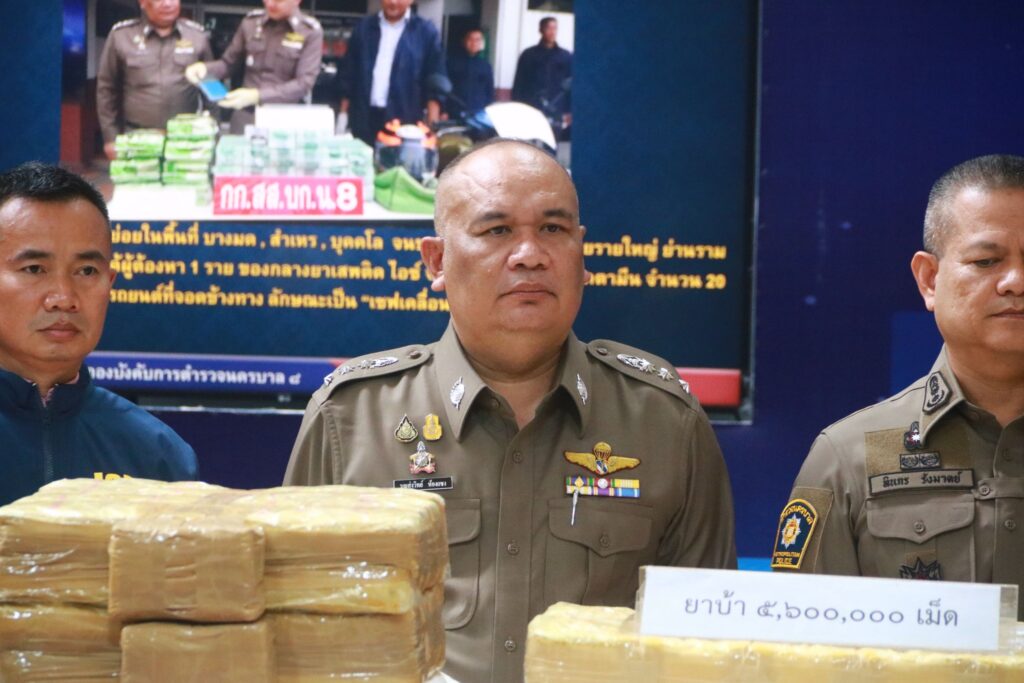 จึงได้นำกำลังเจ้าหน้าที่ตำรวจชุดจับกุมไปเฝ้าจุดสังเกตการณ์ ที่บ้านเช่าหลังดังกล่าว จนกระทั่งวันที่ 24 มีนาคม 2567 เวลาประมาณ 23.00 น. พบกลุ่มของผู้ต้องหามาอยู่รวมกันเพื่อจะนำยาเสพติดออกไปกระจายต่อให้กับลูกค้า เจ้าหน้าที่ตำรวจจึงได้เข้าไปแสดงตัวและขอตรวจค้น พบ ยาบ้าจำนวน 5,600,000 เม็ด และ เคตามีน จำนวน 200 กิโลกรัม ซุกซ่อนอยู่ภายในรถยนต์กระบะตู้บรรทุกและภายในบ้านเช่าหลังดังกล่าว จากการซักถามขยายผล กลุ่มผู้ต้องหารับสารภาพว่า ได้รู้จักกับมานานและรวมตัวกับอยู่ที่อู่ซ่อมรถของนายพงศ์ศักดิ์ หรือเณร ผู้ต้องหาที่ 5 เพื่อมั่วสุมเสพยาเสพติดกัน ต่อได้เริ่มผันตัวเป็นผู้จำหน่ายรายย่อยจนกระทั่งมารับจ้างจากผู้สั่งการ ให้ไปรับยาเสพติดติดจำนวนมากมาเก็บซุกซ่อนไว้ก่อนนำออกกระจายให้กับลูกค้า โดยทำตามคำสั่งผู้ว่าจ้างว่าจะไปรับยาเสพติดที่ใด เมื่อใด และจะต้องส่งยาเสพติด ต่อให้กับลูกค้ารายใด โดยที่ไม่รู้จักทั้งผู้ส่งและมารับยาเสพติด ซึ่งจะได้เพียงค่าจ้างเป็นรอบๆเท่านั้น