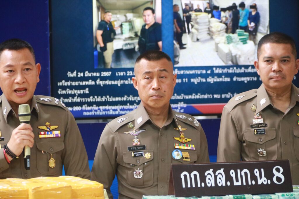 สืบเนื่องมาจากเมื่อวันที่ 24 มีนาคม 2567 เวลา 23.00 น.ชุดปฏบัติการสามารถจับกุม และตรวจยึด ของกลางได้ที่บ้านเลขที่ 60/179 ซอย 11 หมู่บ้าน ณัฐนันทโฮม ตำบลคูขวาง อำเภอลาดหลุมแก้ว จังหวัดปทุมธานี จับกุมผู้ต้องหา จำนวน 6 รายคือ นายกิตติธัช หรือเน็ต (สงวนนามสกุล) อายุ 33 ปี,น.ส.ชญาภา หรือริน (สงวนนามสกุล) อายุ 32 ปี,นายกิตติศักดิ์ หรือจอน (สงวนนามสกุล) อายุ 24 ปี,นายทวีศักดิ์ หรือปอน (สงวนนามสกุล) อายุ 33 ปี,นายพงศ์ศักดิ์ หรือเณร (สงวนนามสกุล) อายุ 31 ปี และ น.ส.วิไลวรรณ หรือนก (สงวนนามสกุล) อายุ 35 ปี โดยแจ้งข้อกล่าวหาว่า “ร่วมกันจำหน่ายยาเสพติดให้โทษประเภท 1 (ยาบ้าหรือเมทแอมเฟตามีน) โดยการมีไว้เพื่อจำหน่ายโดยไม่ได้รับอนุญาต โดยเป็นการกระทำเพื่อการค้า และก่อให้เกิดการแพร่กระจายในหมู่ประชาชน,ร่วมกันจำหน่ายวัตถุออกฤทธิ์ในประเภท 2 (คีตามีน) โดยการมีไว้เพื่อจำหน่ายโดยไม่ได้รับอนุญาต โดยเป็นการกระทำเพื่อการค้า และก่อให้เกิดการแพร่กระจายในหมู่ประชาชน” พร้อมด้วยของกลาง ยาเสพติดให้โทษประเภท 1 (ยาบ้า) จำนวน 5,600,000 เม็ด,วัตถุออกฤทธิ์ต่อจิตประสาทประเภท 2 (คีตามีน) จำนวน 200 กิโลกรัม และ รถยนต์ที่ใช้เก็บซุกซ่อนและขนส่งยาเสพติด จำนวน 4 คัน